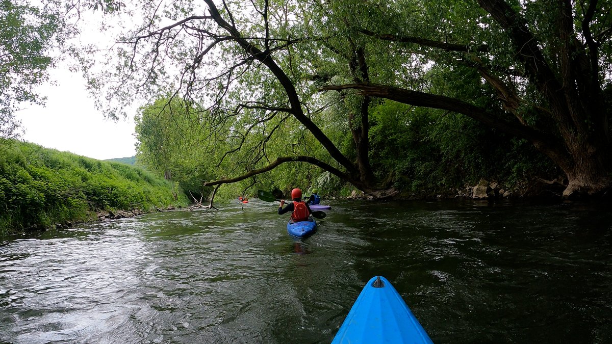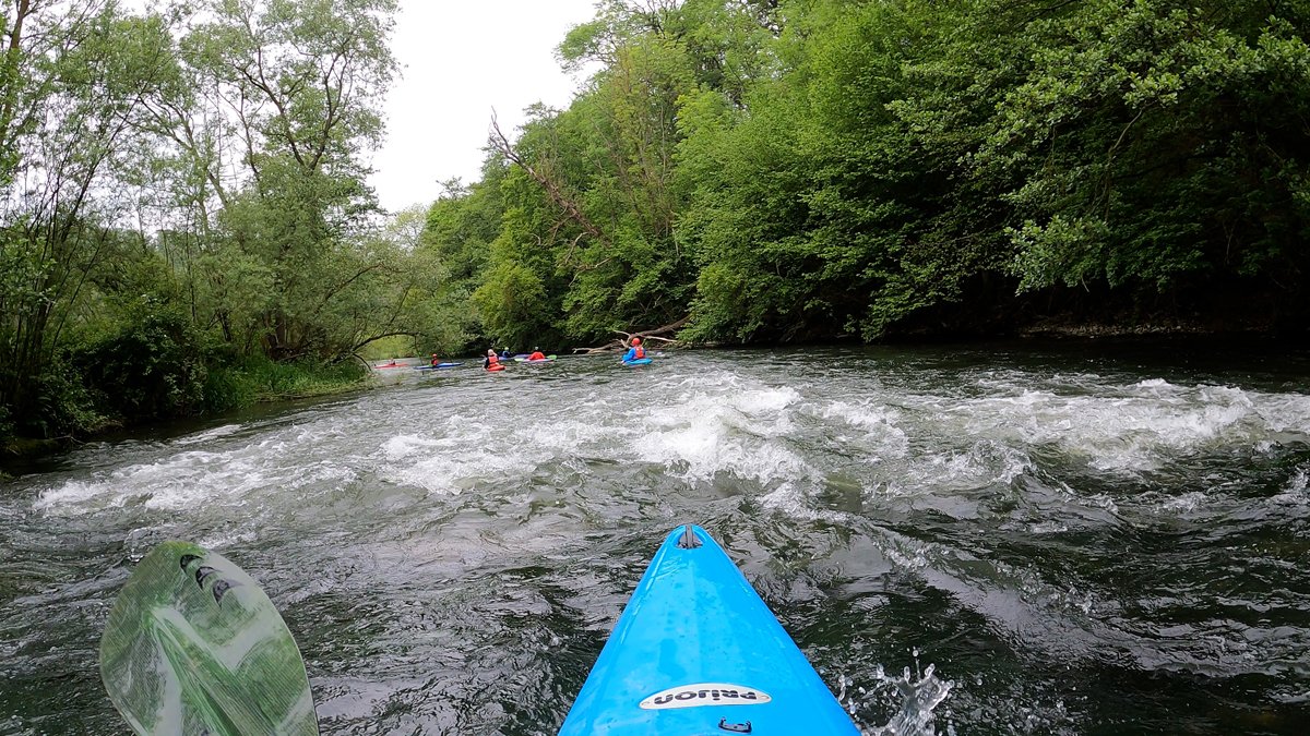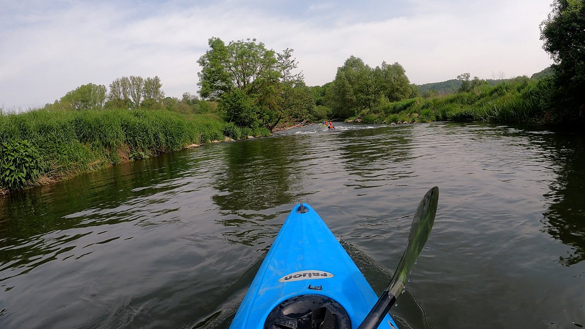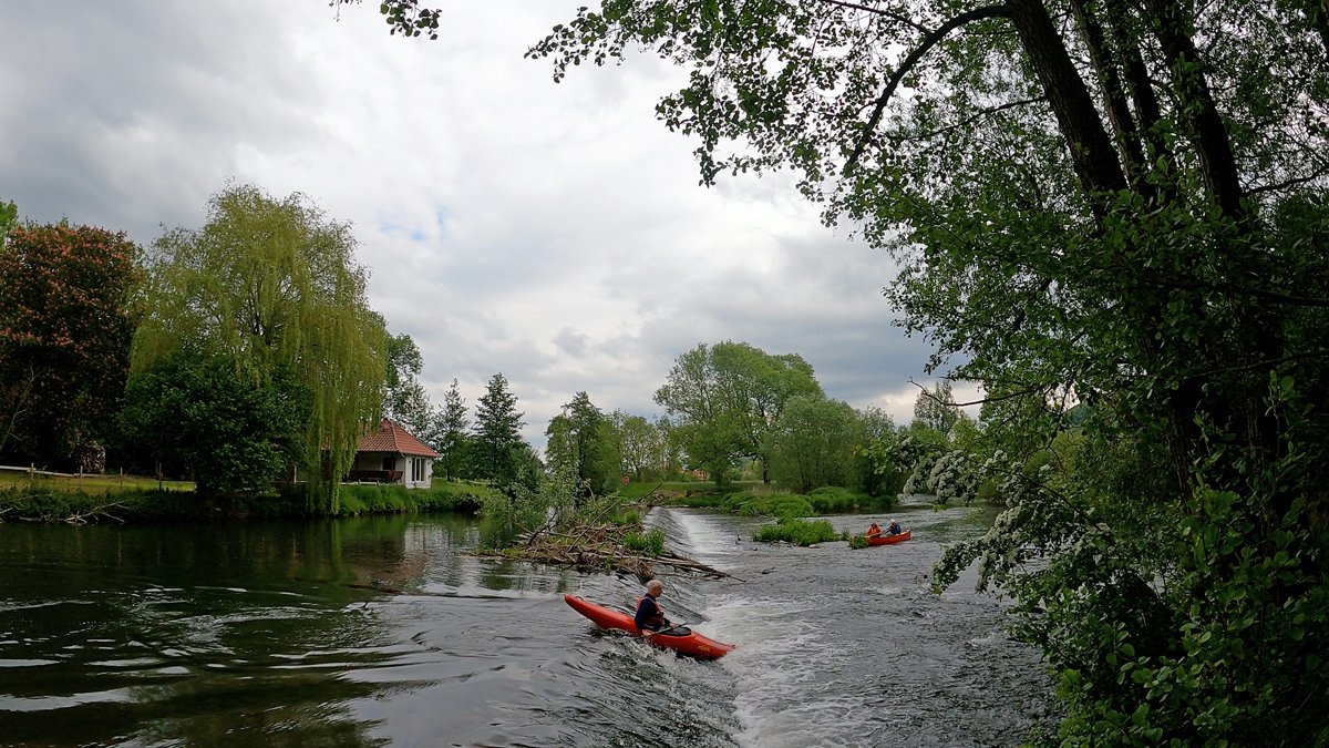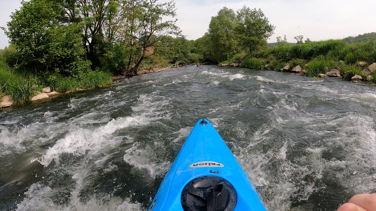 Die Strecke ist überwiegend flott fließend, außer im Staubereich der Wehre. Einige kleinere Schwälle, eher nur harmlos kräuselndes Wasser und ein paar höhere Stufen, teilweise mit Steinbrocken, die schon mal einen Blick auf die Fahrtroute erforderten, machten die ohnehin landschaftlich schöne Strecke abwechselungsreich und manchmal auch sportlich interessant.