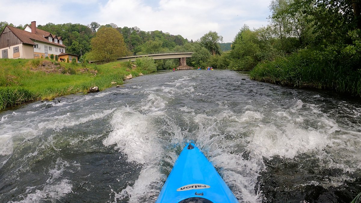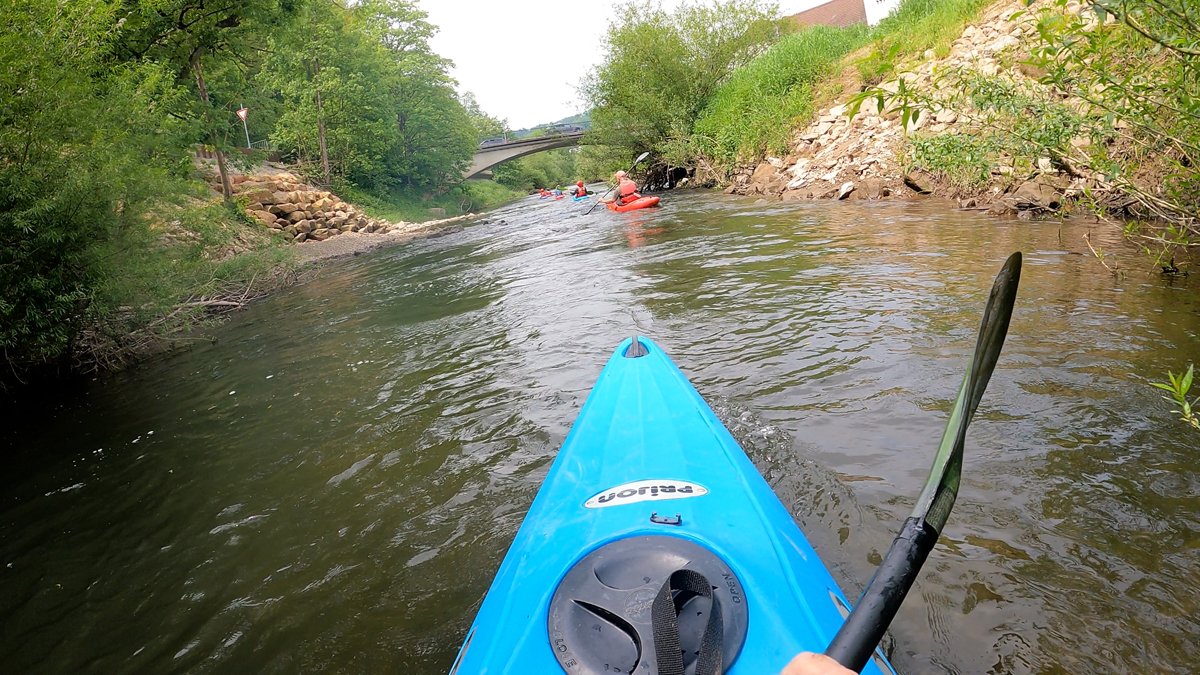 Am nächsten Tag setzte die Gruppe ihre Kajaktour fort und passierte charmante Fachwerkhäuser und historische Brücken, die den Fluss überspannen. Die Diemel offenbarte immer wieder neue Facetten, von sanften Stromschnellen bis hin zu ruhigen Abschnitten, die zum Baden einluden. Das klare Wasser der Diemel lud zu erfrischenden Tauchgängen ein und verlieh der Tour eine zusätzliche Prise Abenteuer.