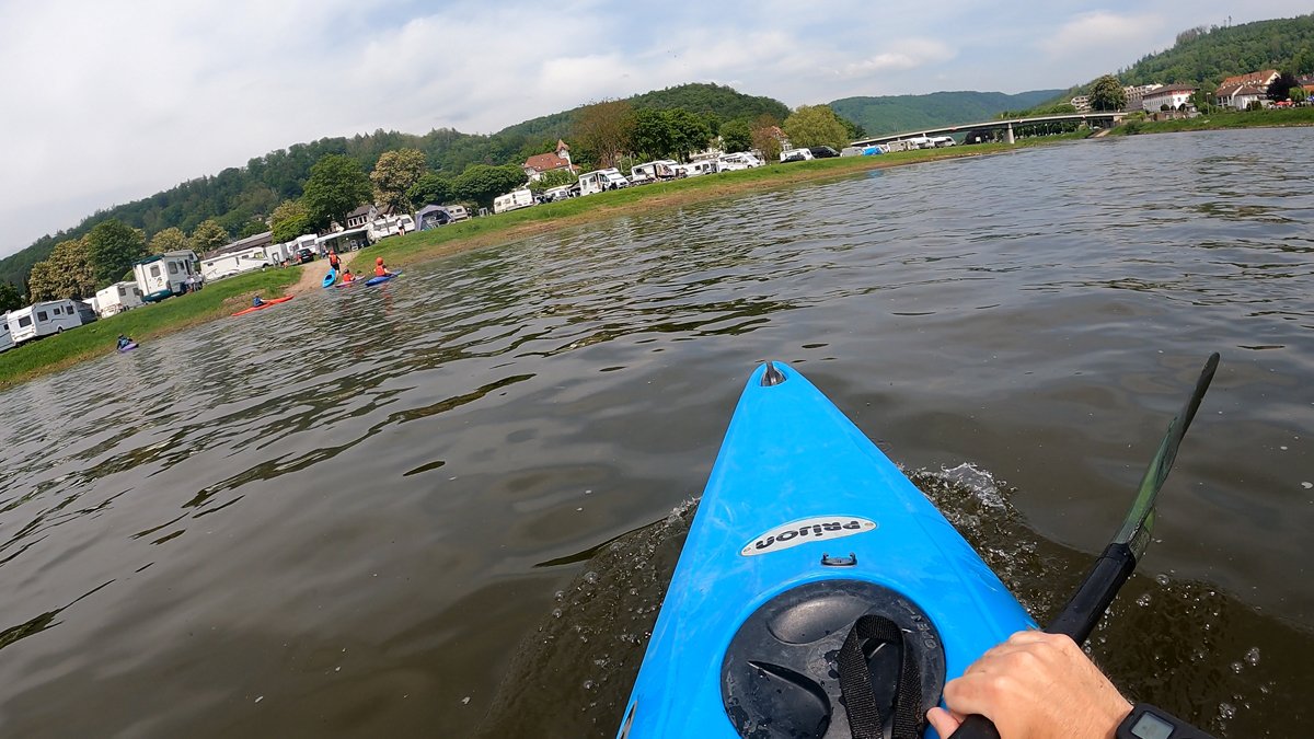 Und so das es wirklich aus: Zwei Streckenabschnitte von Haueda bis Trendelburg und von Trendelburg bis Bad Karlshafen haben wir gepaddelt. Die Aufteilung und die Tage waren fest vorgegeben, weil dazu jeweils vorher eine Genehmigung einzuholen ist. Gezeltet haben wir gegenüber der Diemelmündung auf dem Campingplatz Bad Karlshafen, der so häufig genutzte Platz in Trendelburg war ausgebucht.