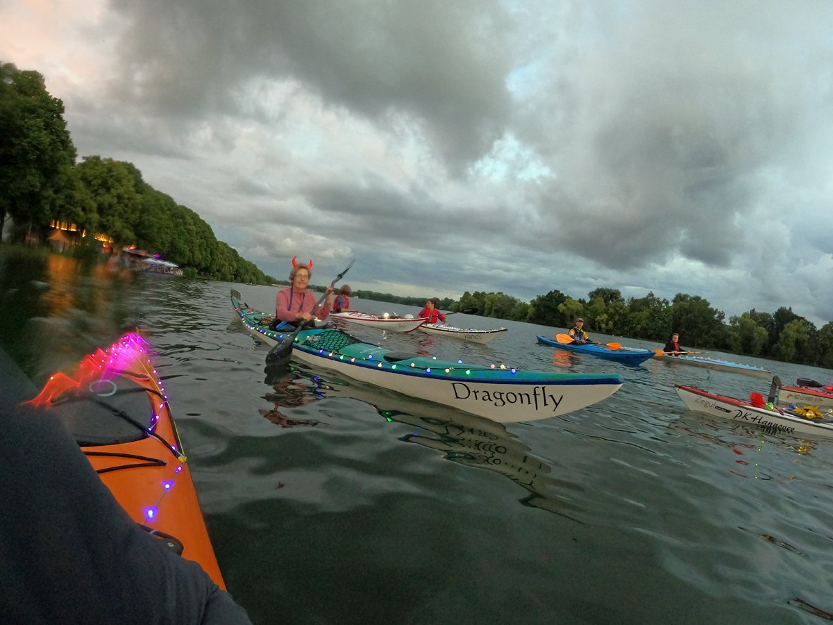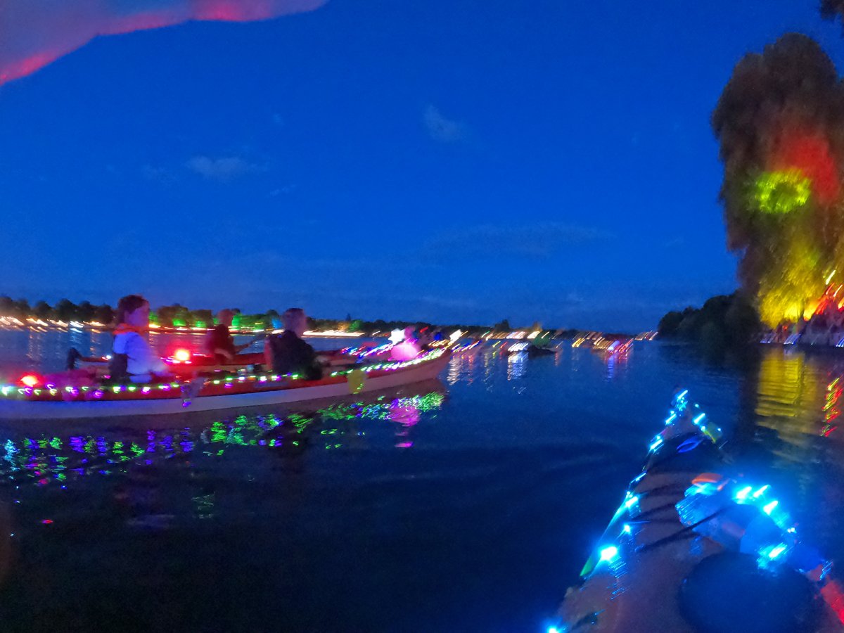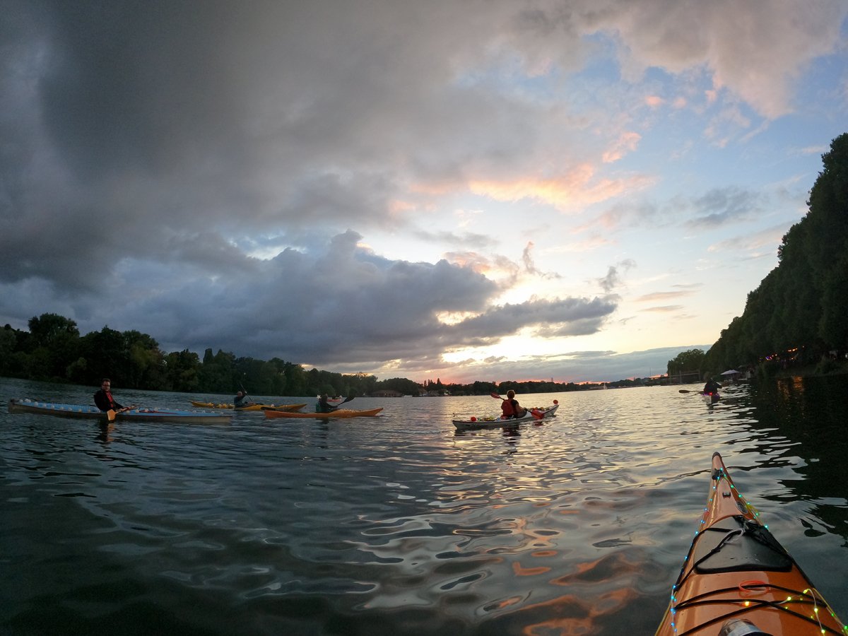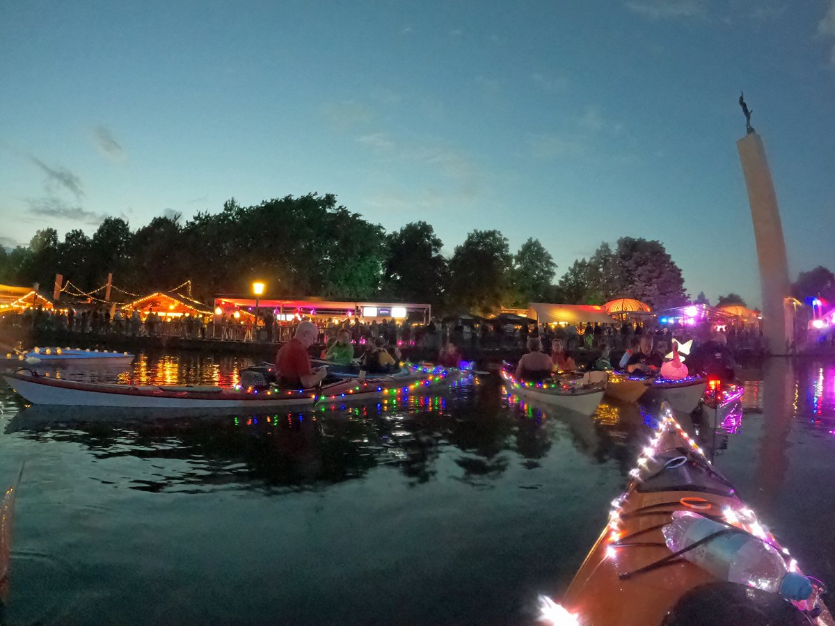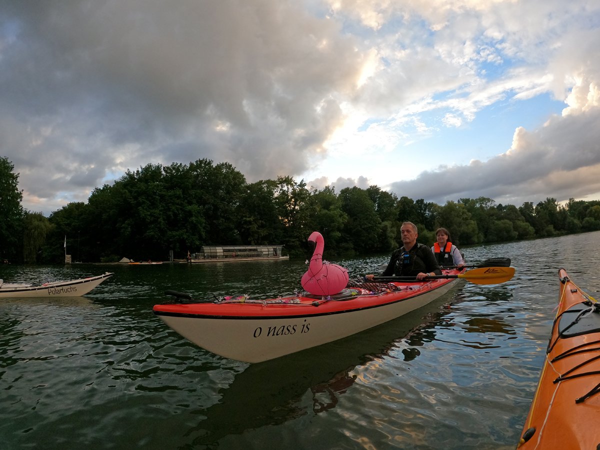 Immer wieder beliebt: Unsere Fahrt zum Maschseefest mit Kajaks. Die Besonderheit: Wir paddeln abends zum See und können das Vergnügen quasi aus erster Reihe geniessen. Nunja,. durhc unsere beleuchteten Boote gehört es aber auch dazu, dass wir gut gesehen werden. Nach einer Seerunde bei Livemusik geht es über die finstere Leine zum Bootshaus zurück.