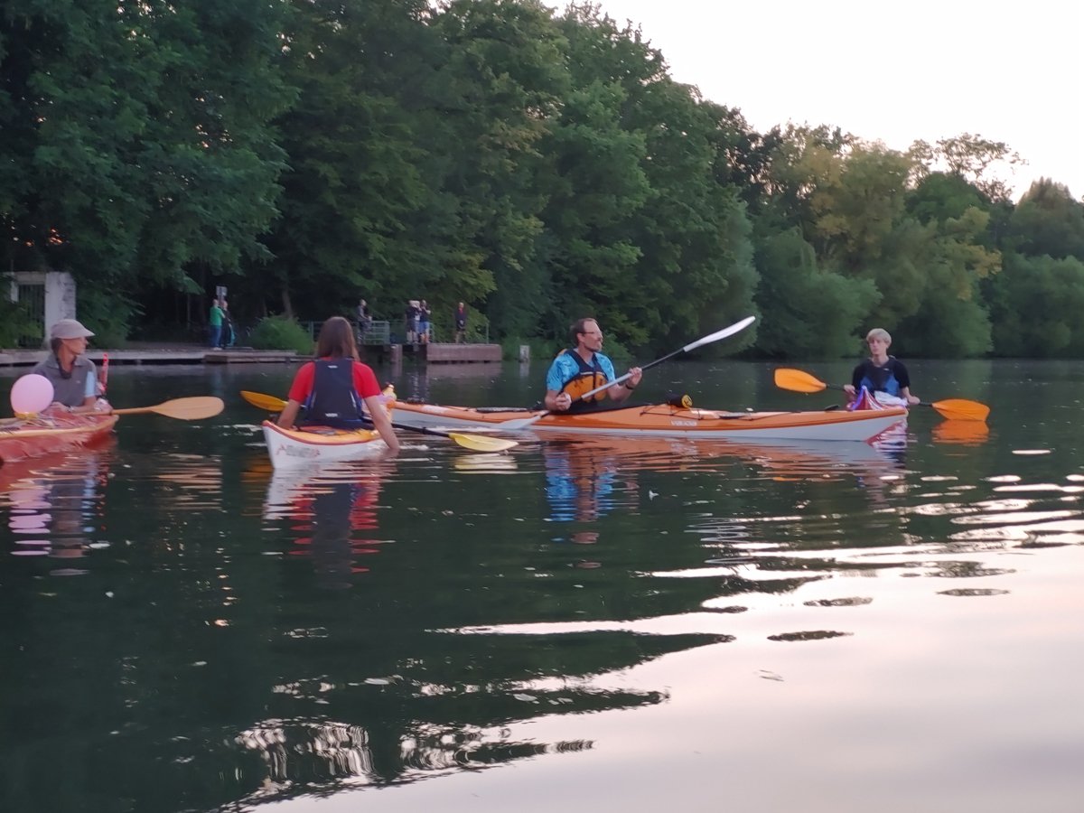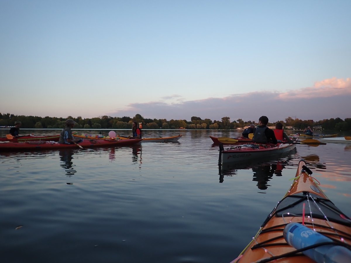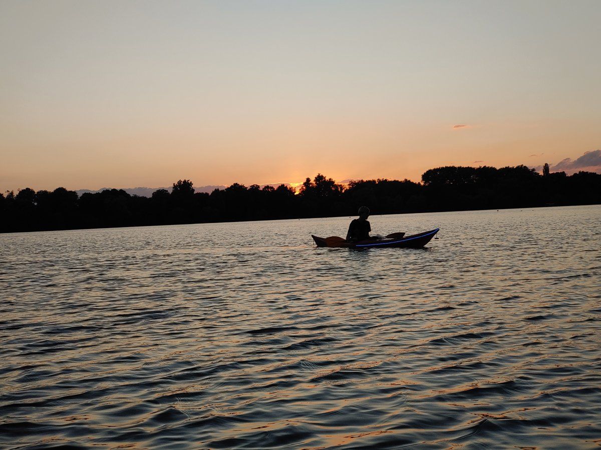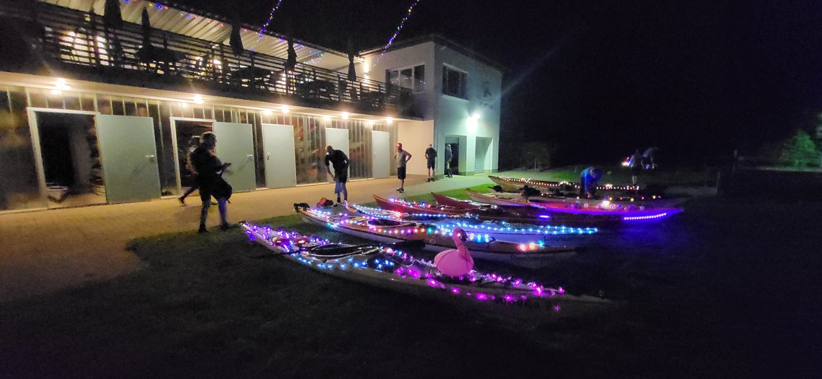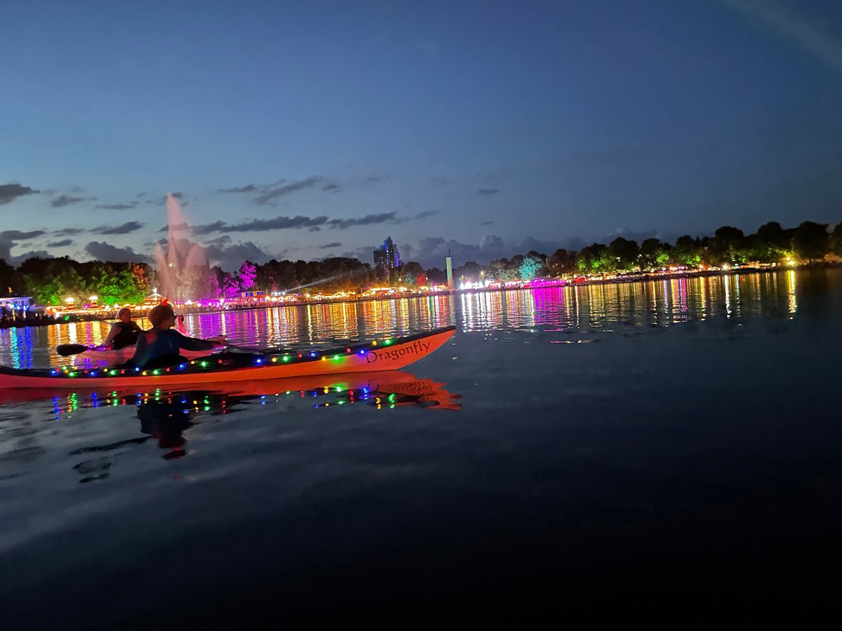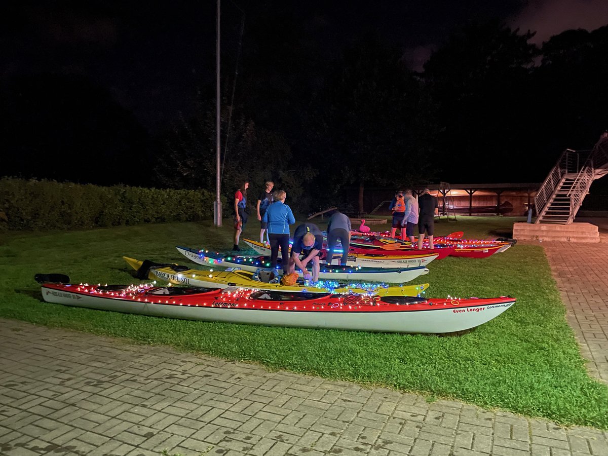 Auch in diesem Jahr besuchten wir wieder das Maschseefest - wie jedes Jahr quasi aus der allerersten Reihe, mit Kajak auf dem See. Früher reichten ein paar Knicklichter, um die Boote zu kennzeichnen und zu beleuchten. Inzwischen wird immer mehr aufgerüstet. Wasserfeste Lichterketten mit kleinen LEDs machen die Boote gut erkennbar. Auf der Rückfahrt vom Maschsee zum Bootshaus, stromaufwärts auf der Leine, sorgte ein Abend fast ohne Mond und mit vielen Wolken dann aber doch für spannende Dunkelheit.