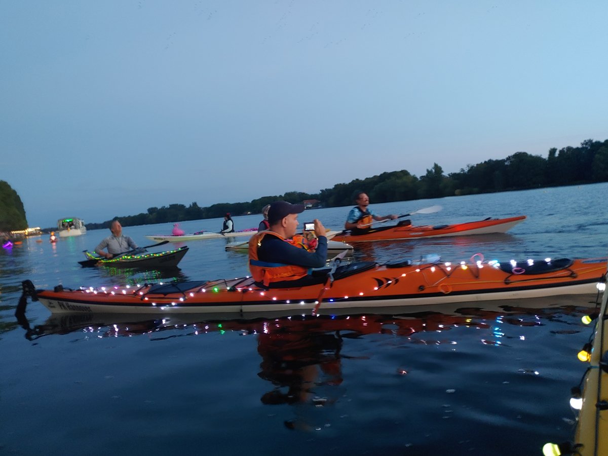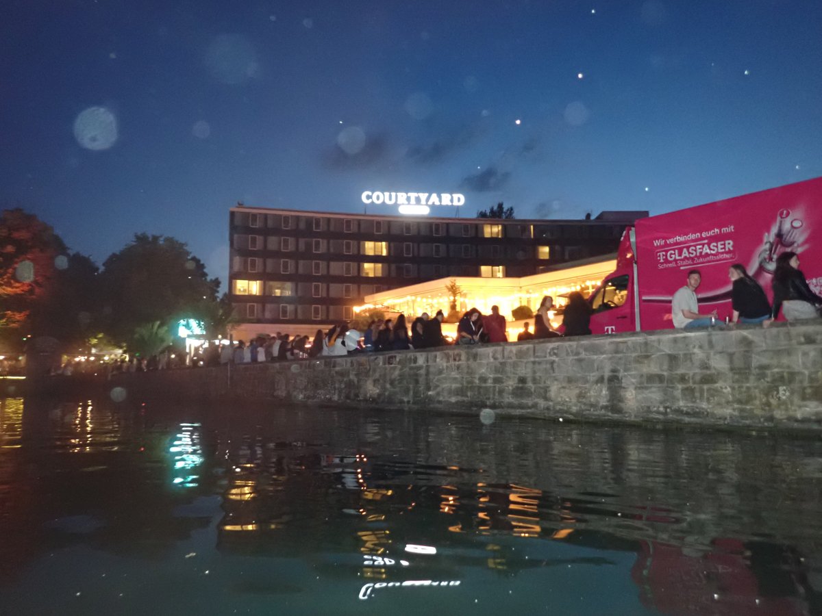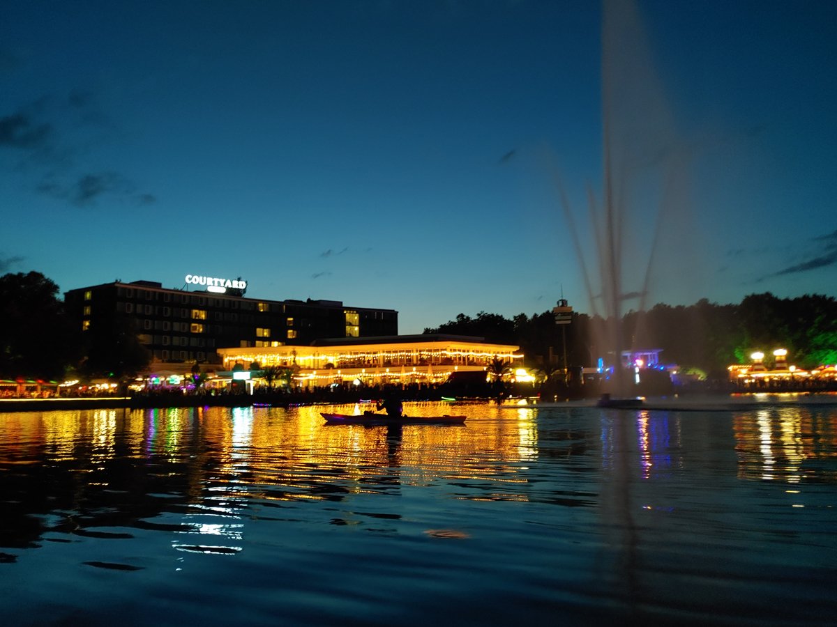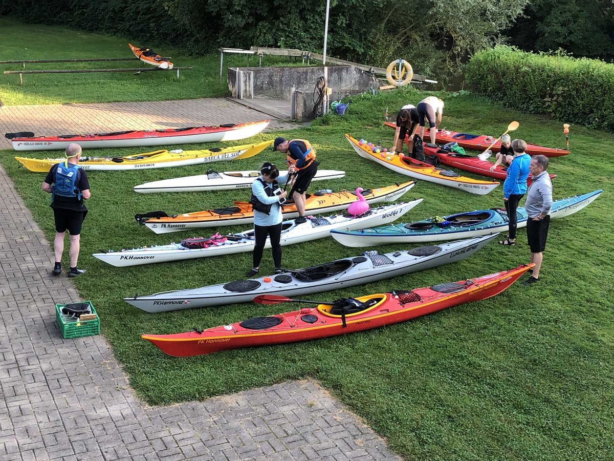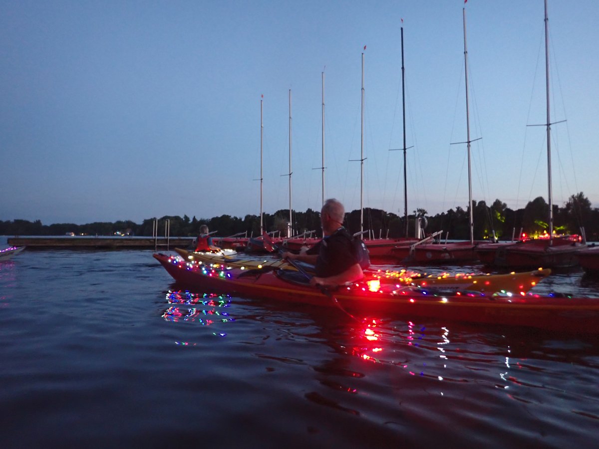Auch in diesem Jahr besuchten wir wieder das Maschseefest - wie jedes Jahr quasi aus der allerersten Reihe, mit Kajak auf dem See. Früher reichten ein paar Knicklichter, um die Boote zu kennzeichnen und zu beleuchten. Inzwischen wird immer mehr aufgerüstet. Wasserfeste Lichterketten mit kleinen LEDs machen die Boote gut erkennbar. Auf der Rückfahrt vom Maschsee zum Bootshaus, stromaufwärts auf der Leine, sorgte ein Abend fast ohne Mond und mit vielen Wolken dann aber doch für spannende Dunkelheit.