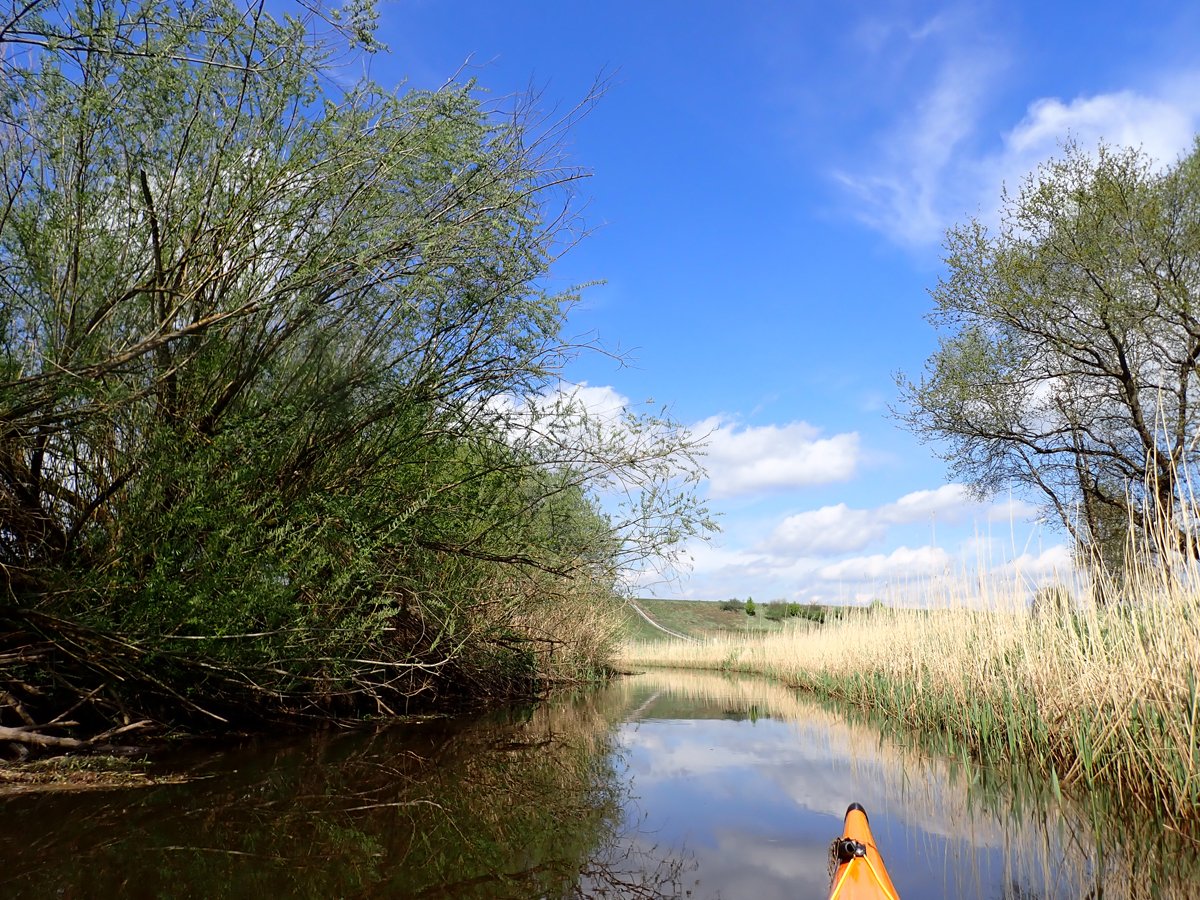 Ostermontag haben wir genutzt für eine Tagestour auf der Gifhorner Aller. Empfinden viele Paddler die Aller ab Celle als relativ langweilig, da sie breit und bei niedrigen Ufern häufig dem Wind ausgesetzt ist, noch dazu durch eine recht langweilige Landschaft fließt, ist es mit der Gifhorner Aller ganz anders: Dieser Abschnitt beginnt kurz hinter Wolfsburg und reicht bis Gifhorn. Auf einer Luftlinie zwischen Start- und Zielpunkt mit ca. 11 Kilometern legt der Fluss fast 20 Kilometer zurück: Zählt man alle Kurven und Knicke, kommt man auf rund 190 davon. Dieses freie mändern des Flusslaufes hat man nur noch selten und das macht das meist schmale Gewässer sehr reizvoll. Noch dazu komtm nur eine Umtragestelle kurz vor dem Ziel.
