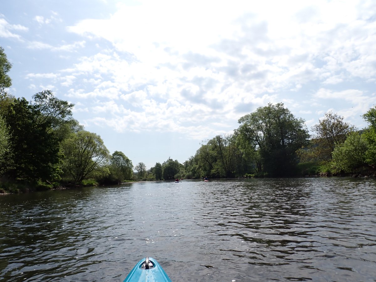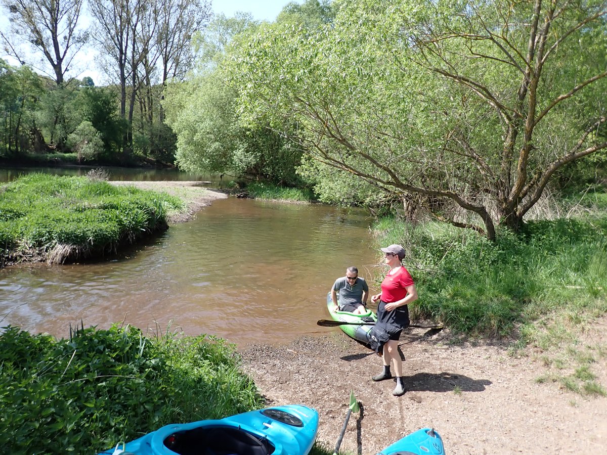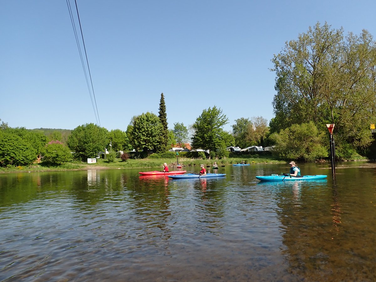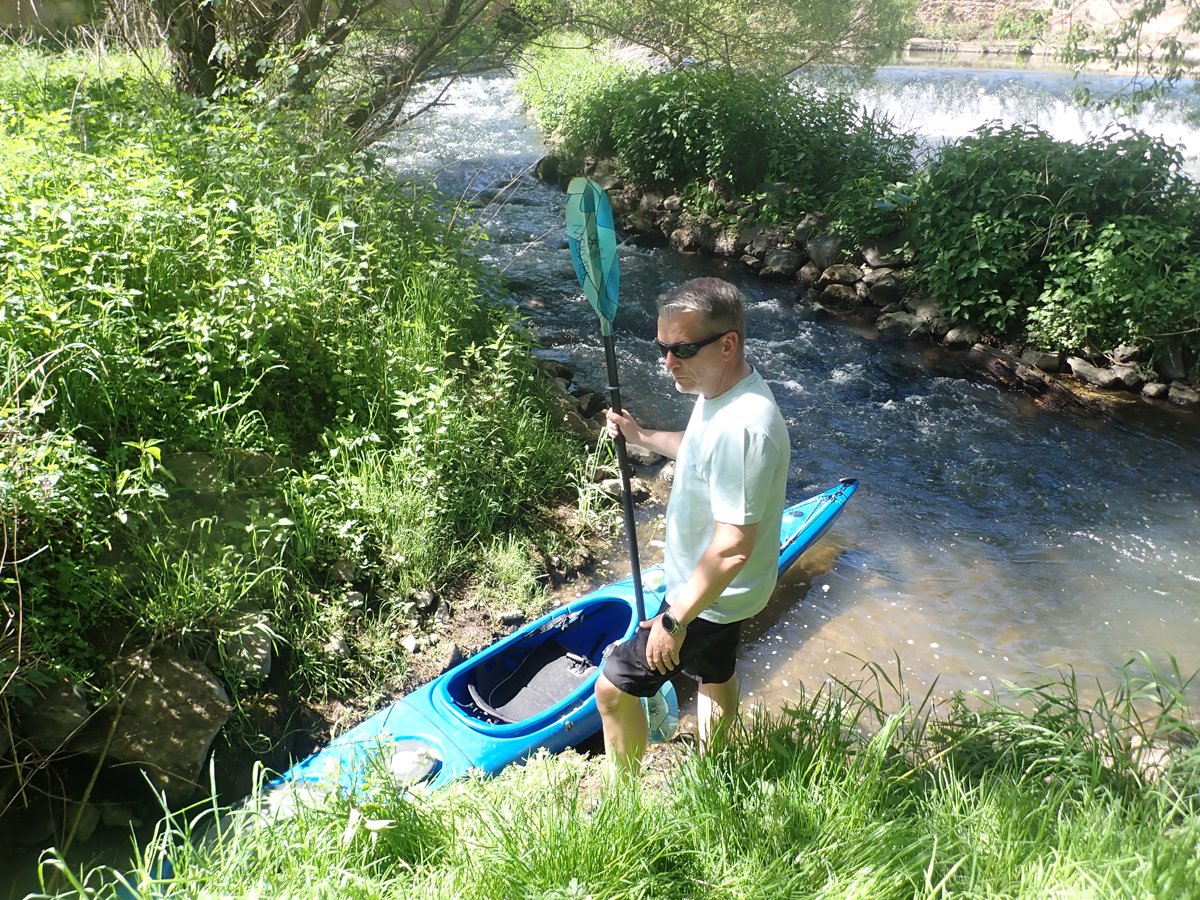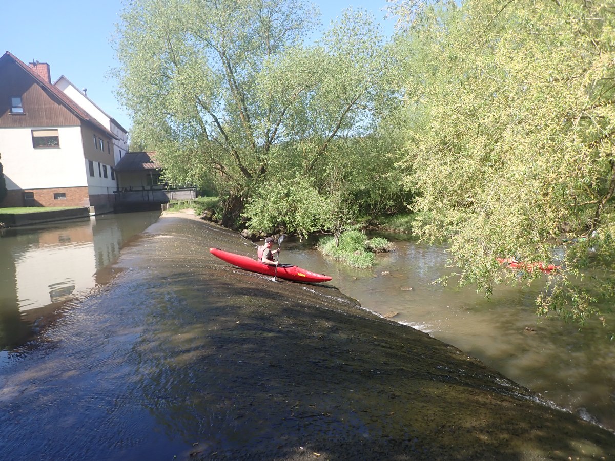 Die Schwalm ist ein Nebenfluss der weitaus bekannteren Eder, die das zweite Ziel darstellte. Bei genügend Wasser sicher eine interessante Fahrt. Schließlich versorgt die Eder über den Ederstausee die Weser in trockenen Zeiten mit genügend Nachschub, damit die Schifffahrt auf der Weser funktioniert. Nur war die Weser zu unserem Zeitpunkt (leider) so gut gefüllt, dass es vom Ederstausee nur die Mindestabgabemenge Wasser in die Eder gab und der Fluss deutlich zu trocken war. Merke: Am unteren Limit der Abgabemenge sollte man die Eder auslassen.