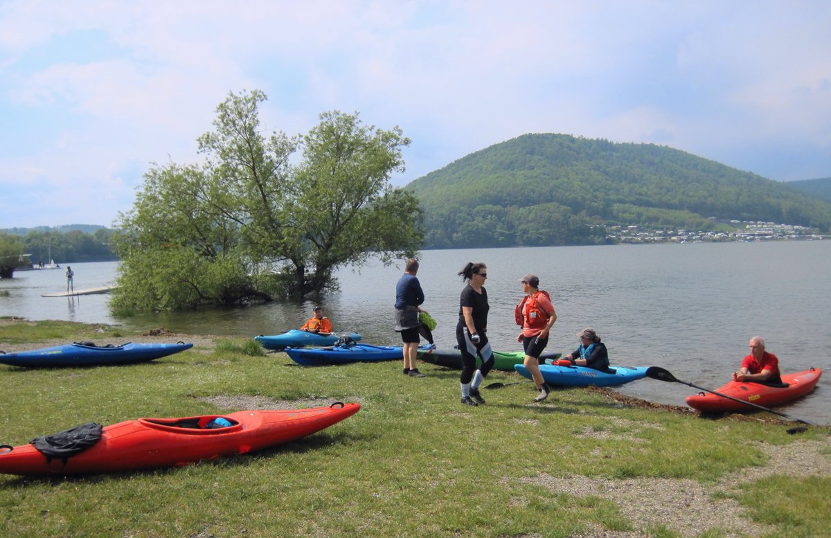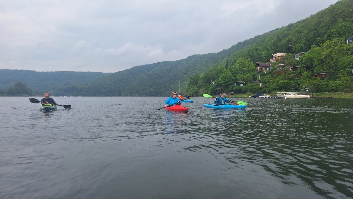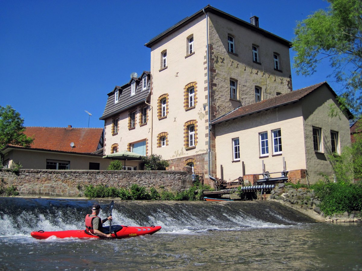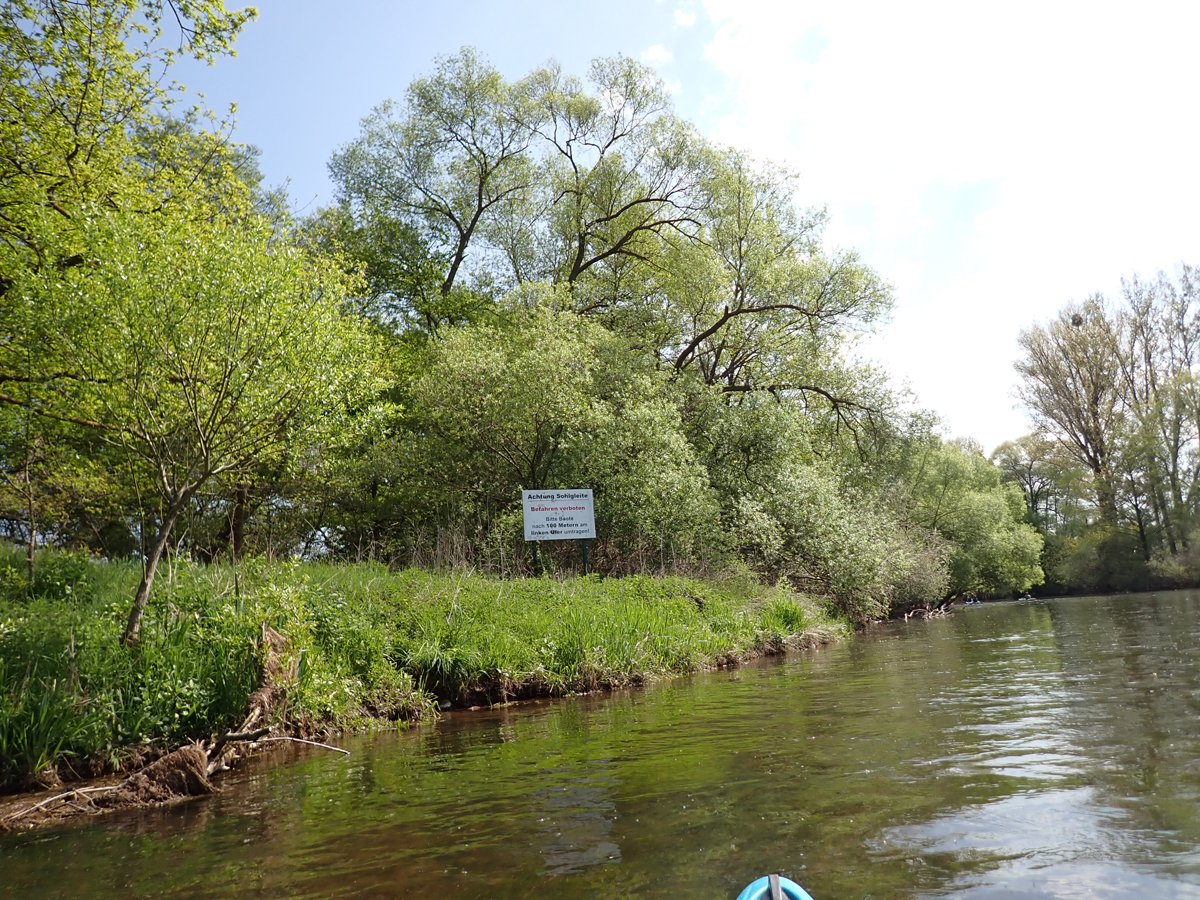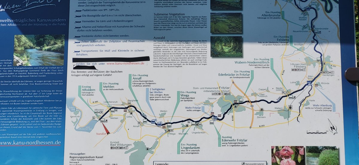 Die Schwalm ist ein Nebenfluss der weitaus bekannteren Eder, die das zweite Ziel darstellte. Bei genügend Wasser sicher eine interessante Fahrt. Schließlich versorgt die Eder über den Ederstausee die Weser in trockenen Zeiten mit genügend Nachschub, damit die Schifffahrt auf der Weser funktioniert. Nur war die Weser zu unserem Zeitpunkt (leider) so gut gefüllt, dass es vom Ederstausee nur die Mindestabgabemenge Wasser in die Eder gab und der Fluss deutlich zu trocken war. Merke: Am unteren Limit der Abgabemenge sollte man die Eder auslassen.