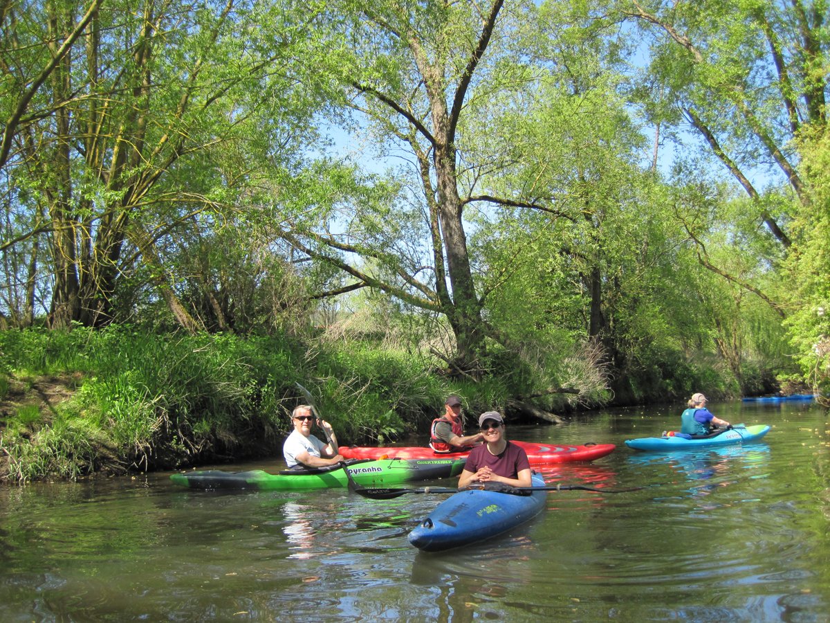 Den Anfang machte der Kleinfluss Schwalm, den es sich tatsächlich zu erarbeiten galt, mit zahlreichen Bäumen und Sträuchern und einem aufwändig zu umtragenden Wehr. Doch diese kleine Herausforderung machte die als Entdeckertour ausgeschriebene Fahrt erst spannend und die Schwalm zu einem lohnenden Tipp, wäre sie nicht so weit entfernt.