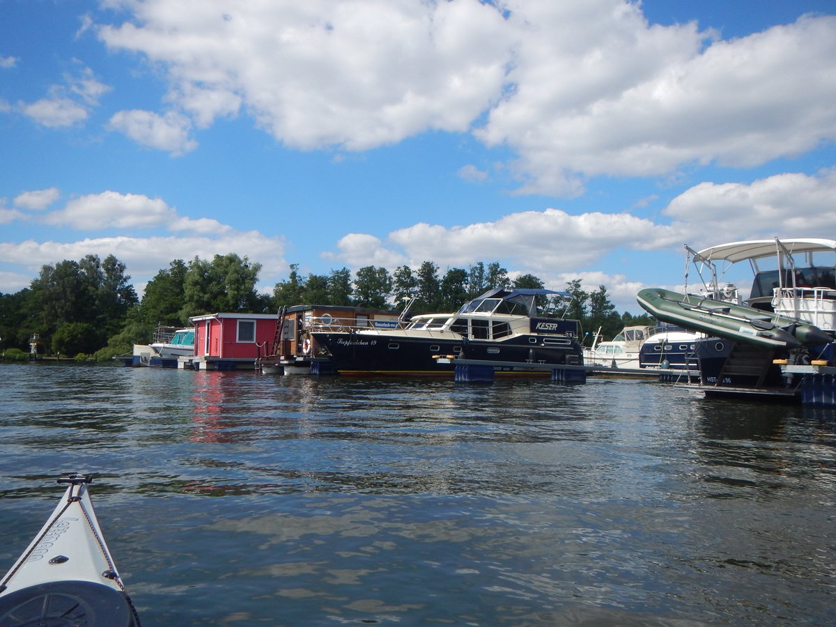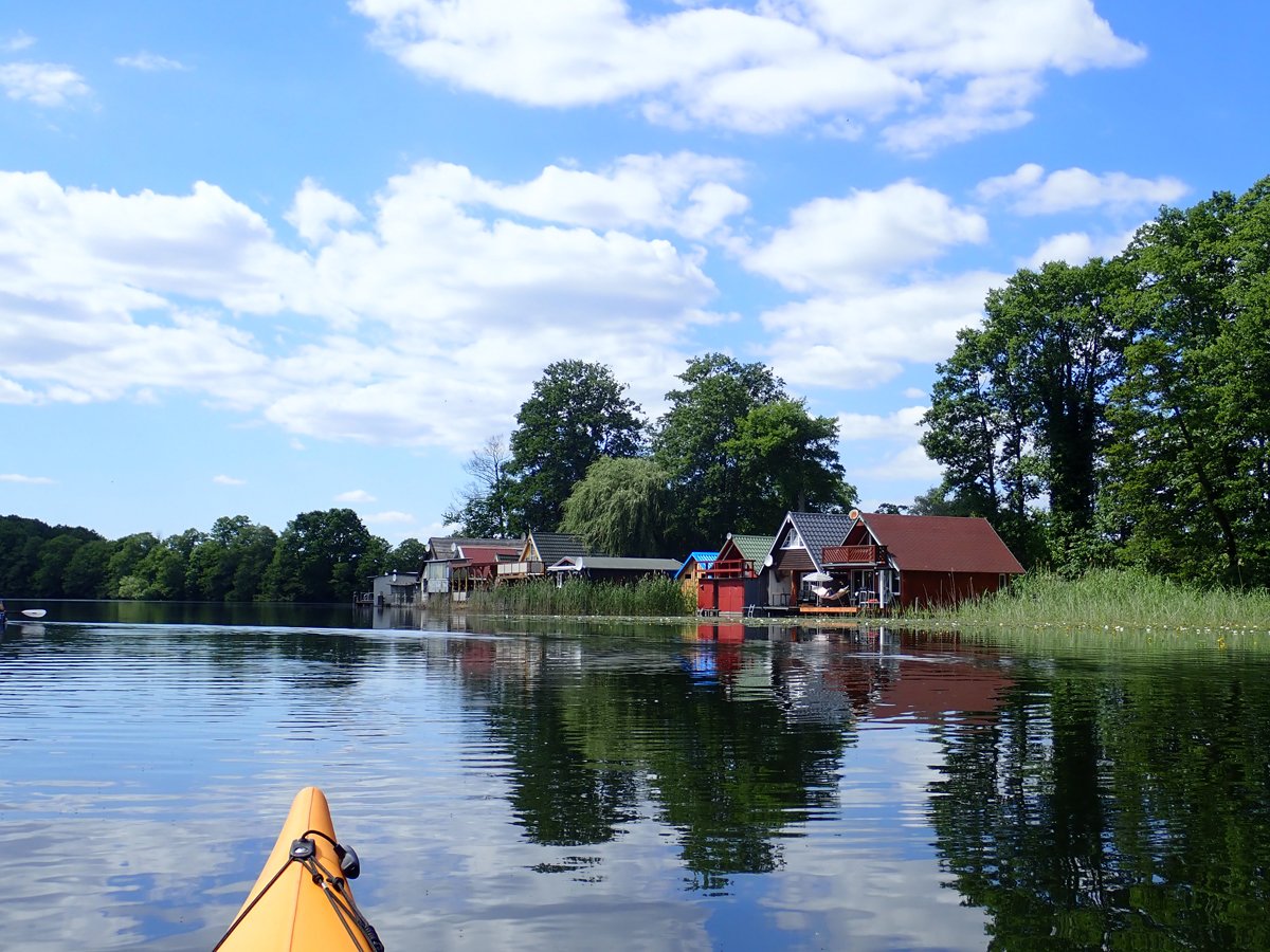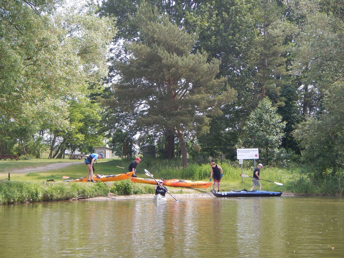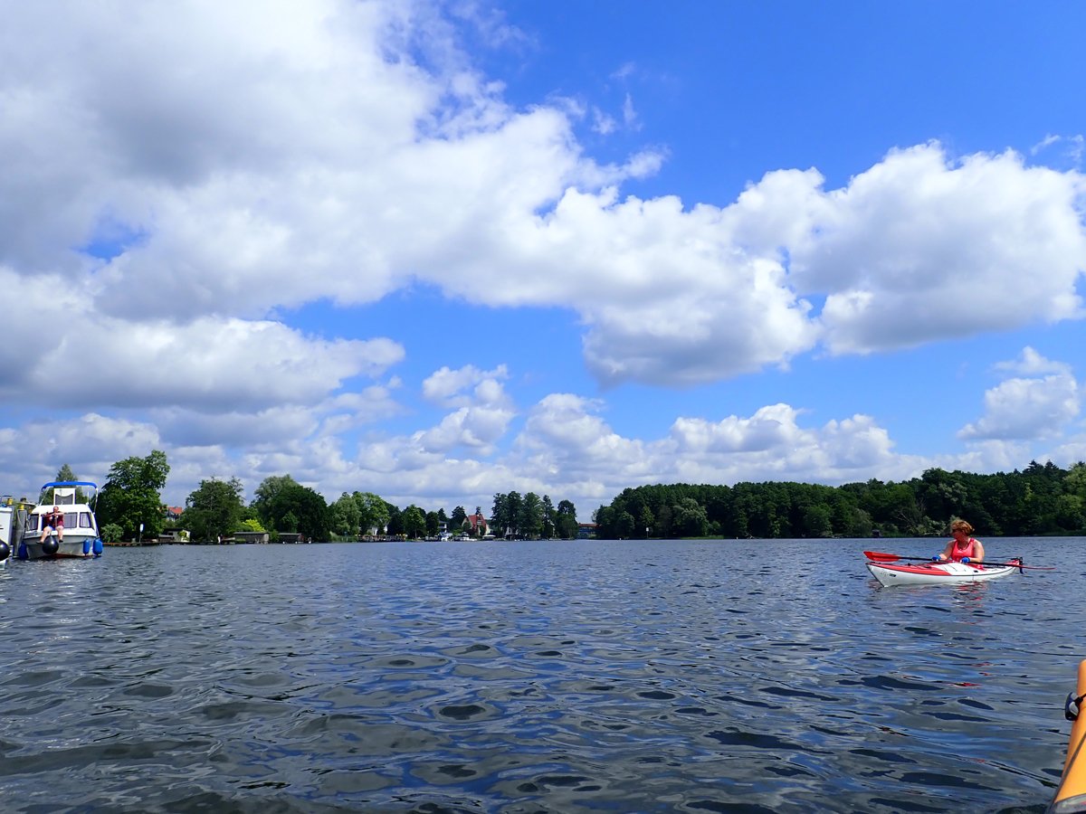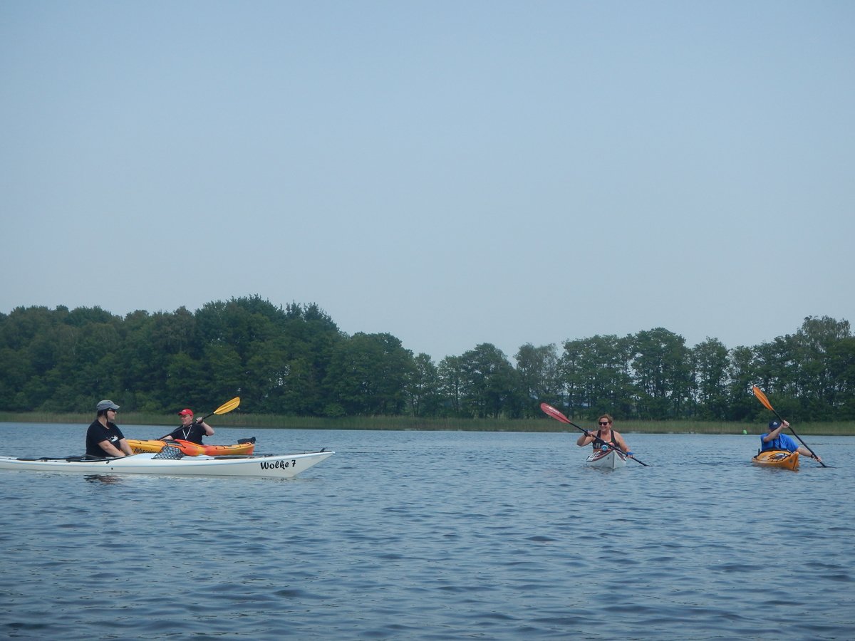 Noch am Ankunftsabend ging es für eine kurze Tour aufs Wasser: Vom nördlichen Seeende die Havel aufwärts Richtung Labus-See und zurück. Der zweite Tag führte uns an die obere Havel: Vom Käbeliksee, dem Havelquellsee, über viele kleinere Seen und wechselnd durch enge Flussläufe folgten wir der Havel bis nach Blankenförde, wo wir die Tour kurz vor einem heftigen Gewitter abbrechen mussten.
