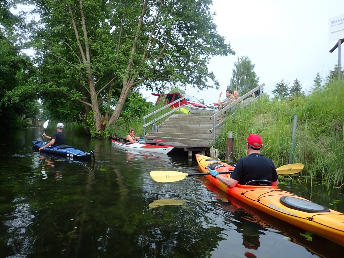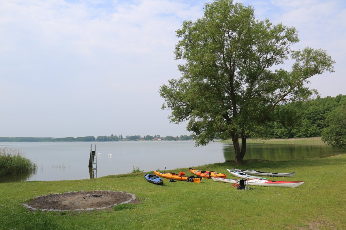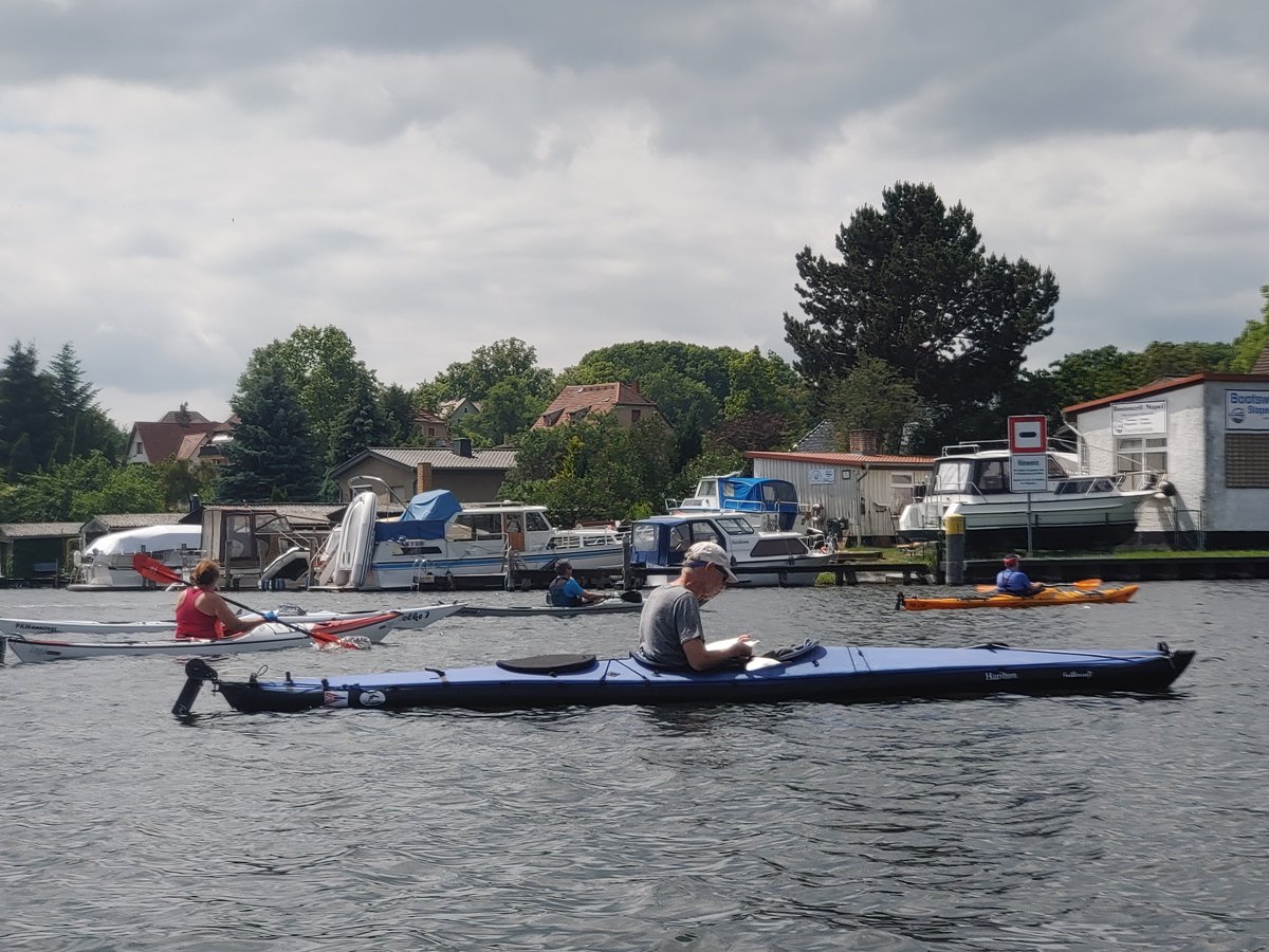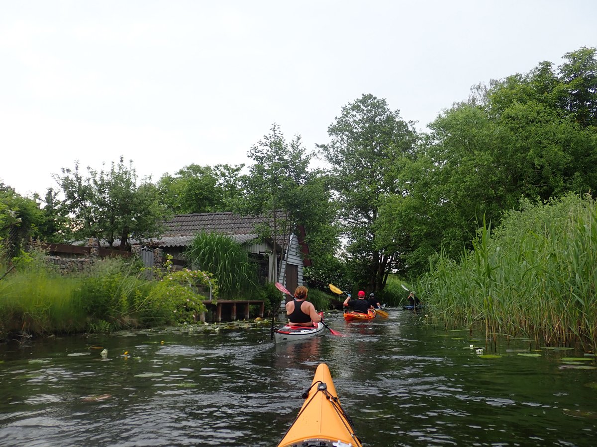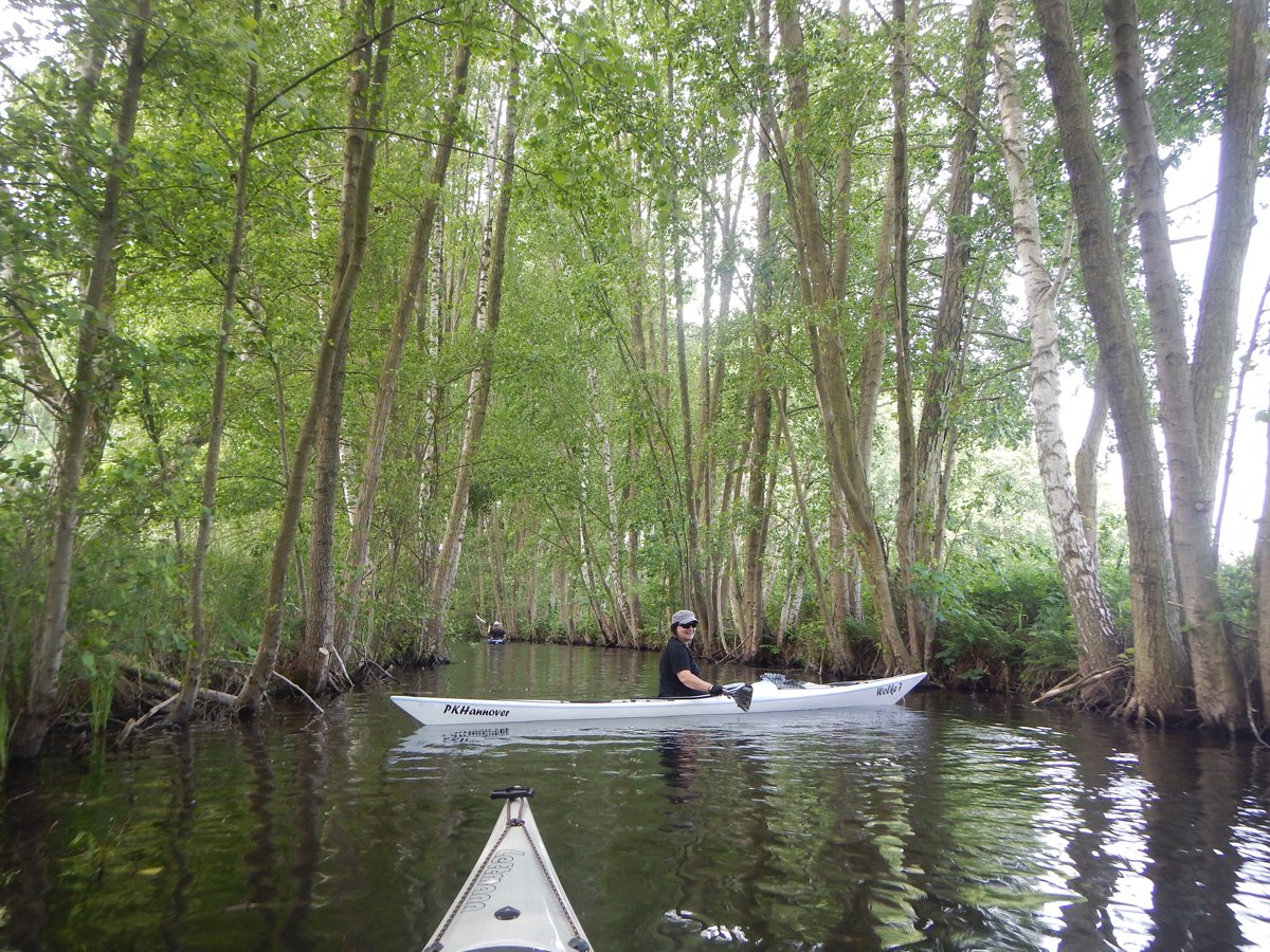 Noch am Ankunftsabend ging es für eine kurze Tour aufs Wasser: Vom nördlichen Seeende die Havel aufwärts Richtung Labus-See und zurück. Der zweite Tag führte uns an die obere Havel: Vom Käbeliksee, dem Havelquellsee, über viele kleinere Seen und wechselnd durch enge Flussläufe folgten wir der Havel bis nach Blankenförde, wo wir die Tour kurz vor einem heftigen Gewitter abbrechen mussten.