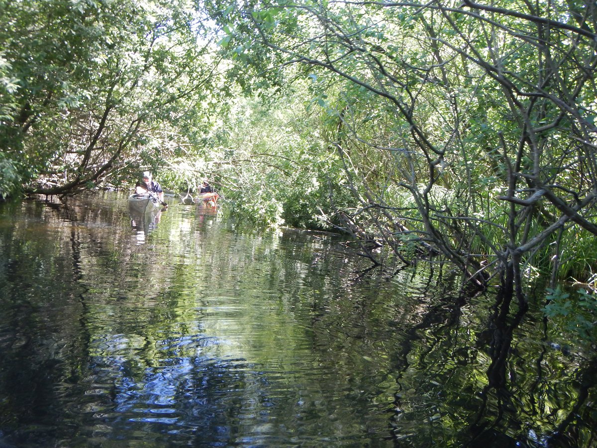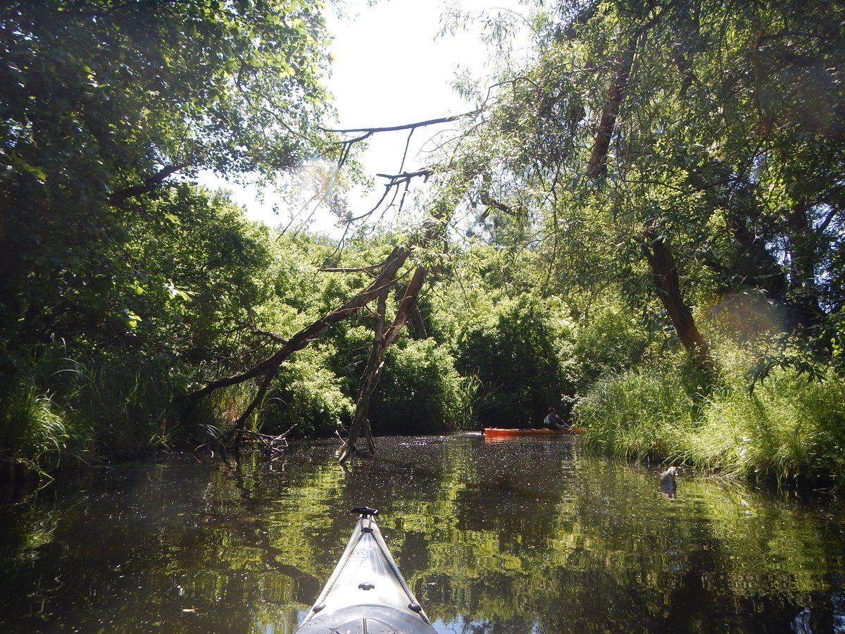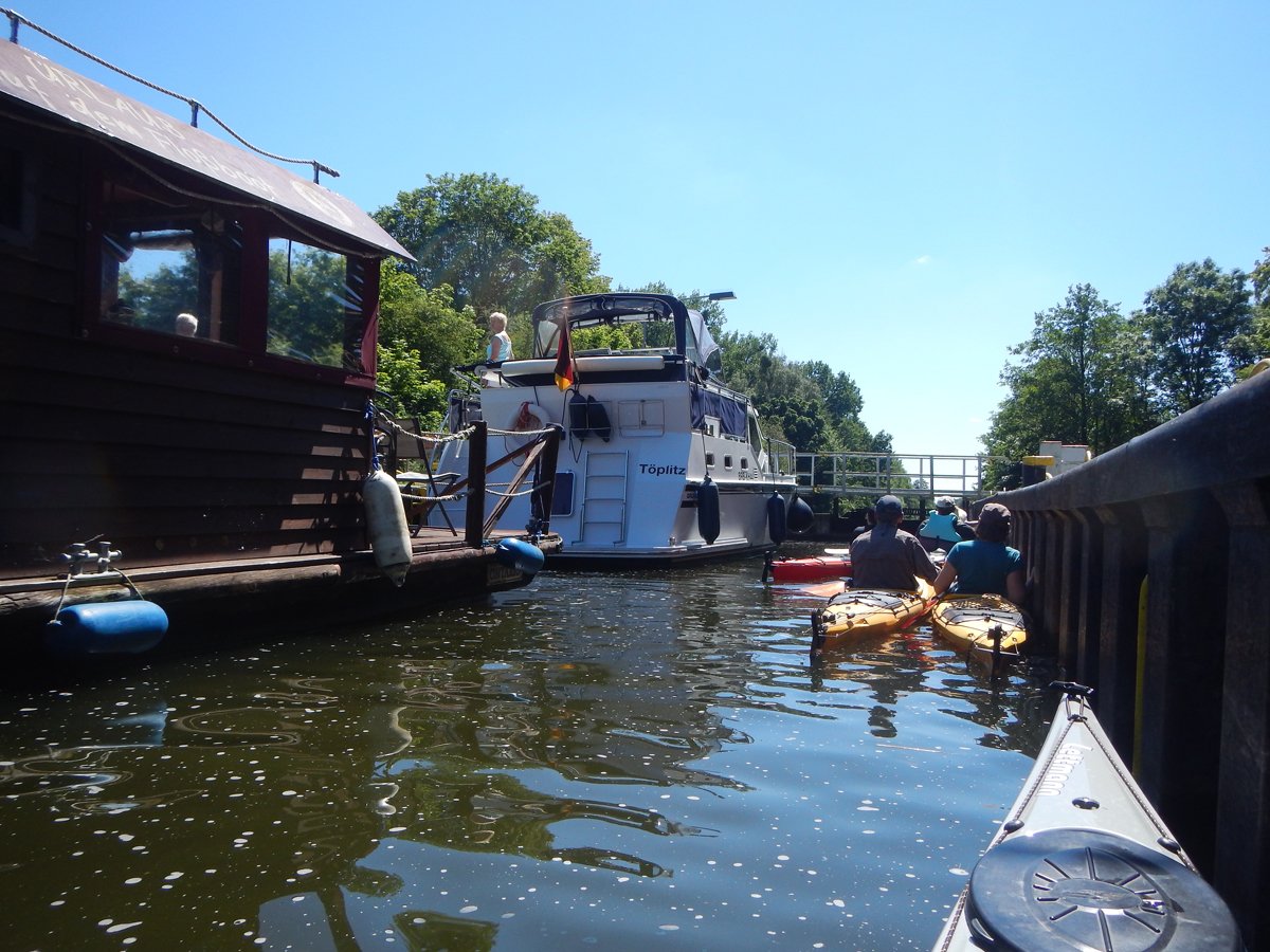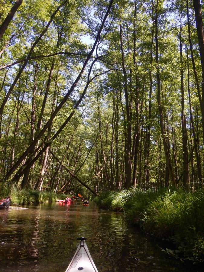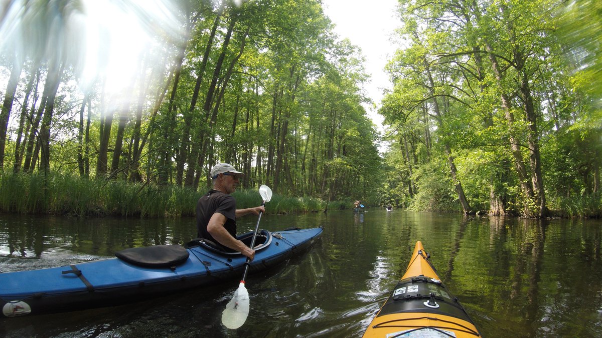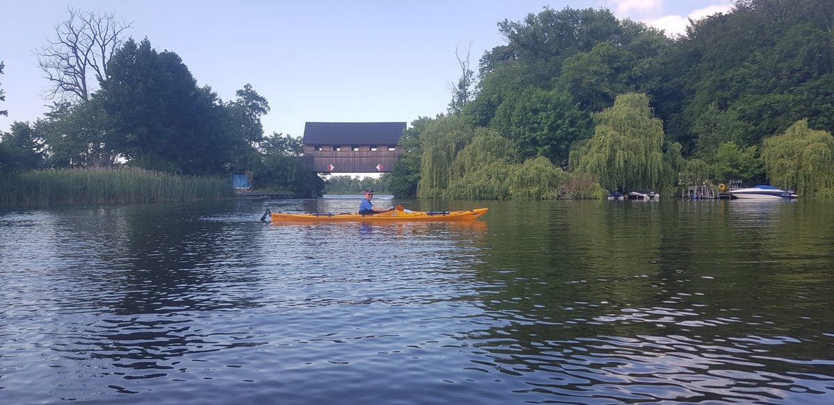Noch am Ankunftsabend ging es für eine kurze Tour aufs Wasser: Vom nördlichen Seeende die Havel aufwärts Richtung Labus-See und zurück. Der zweite Tag führte uns an die obere Havel: Vom Käbeliksee, dem Havelquellsee, über viele kleinere Seen und wechselnd durch enge Flussläufe folgten wir der Havel bis nach Blankenförde, wo wir die Tour kurz vor einem heftigen Gewitter abbrechen mussten.