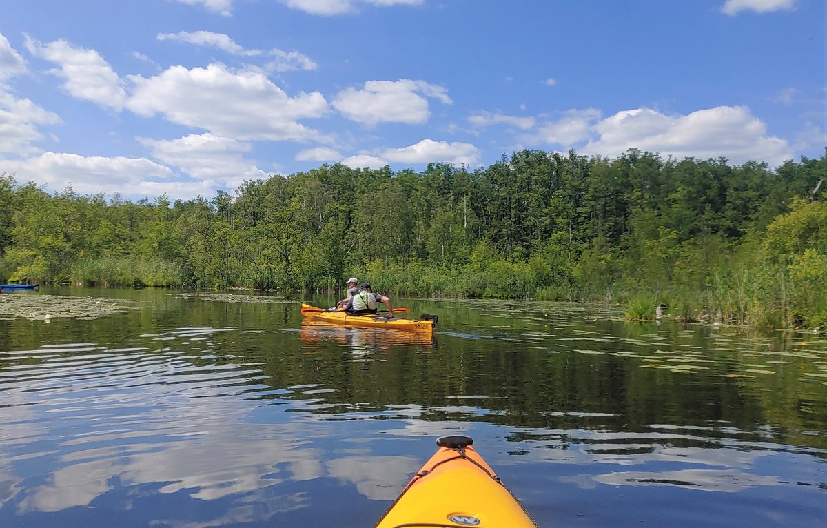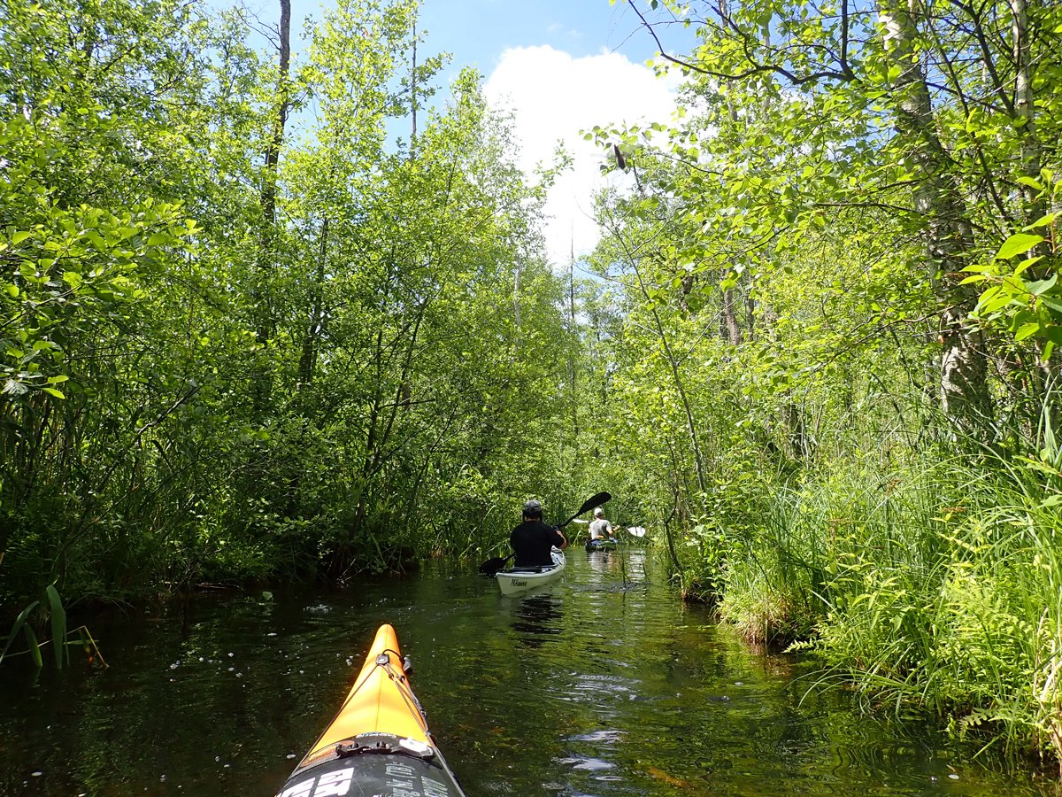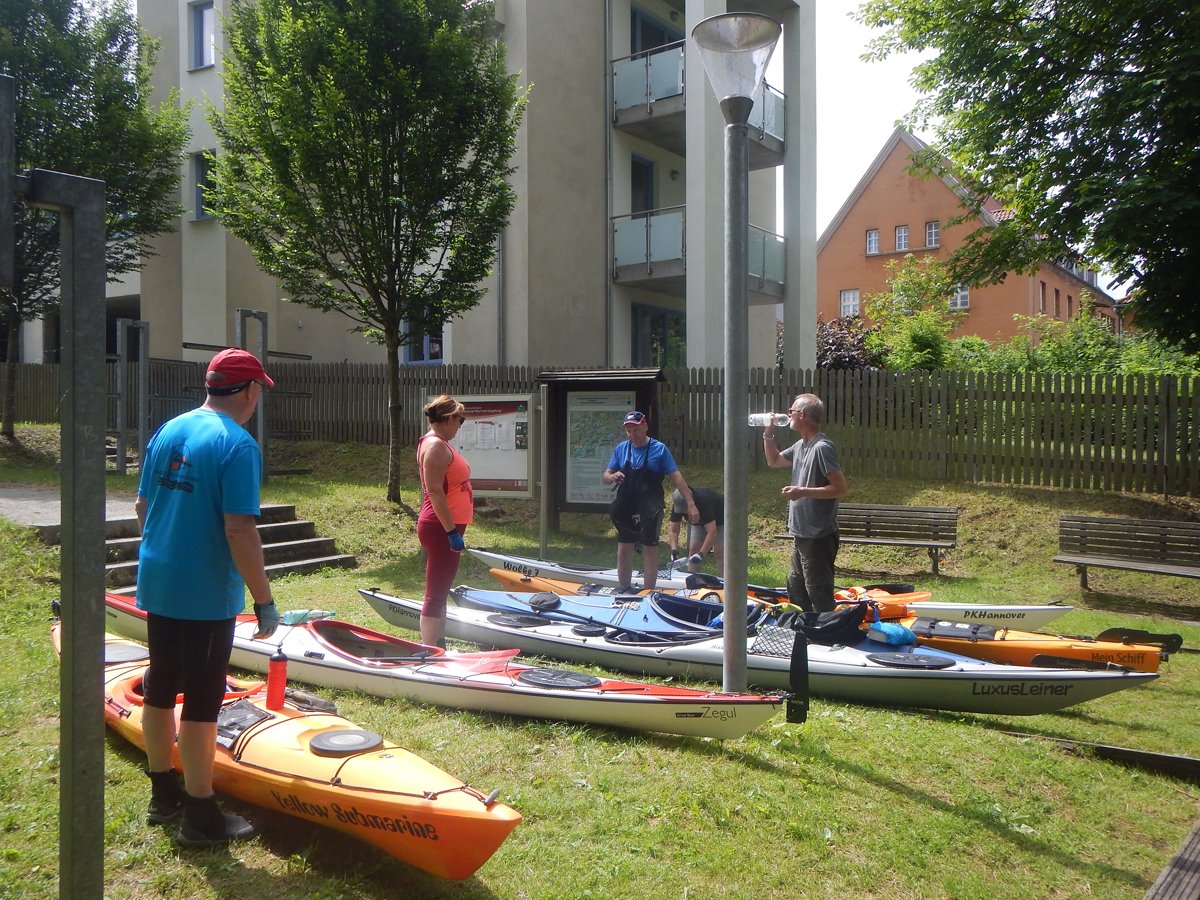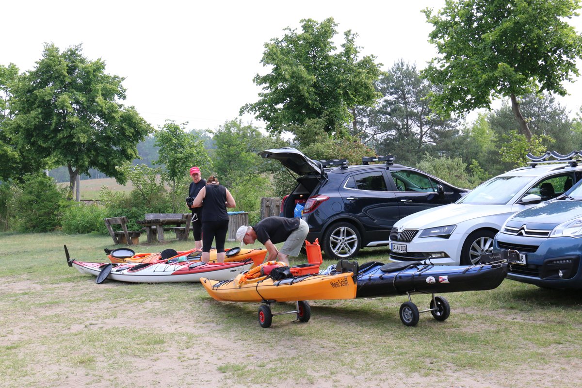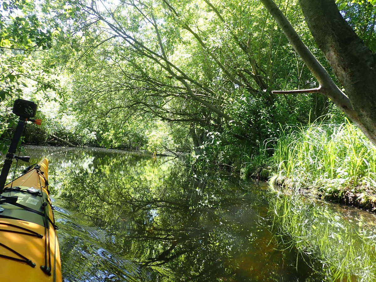 Noch am Ankunftsabend ging es für eine kurze Tour aufs Wasser: Vom nördlichen Seeende die Havel aufwärts Richtung Labus-See und zurück. Der zweite Tag führte uns an die obere Havel: Vom Käbeliksee, dem Havelquellsee, über viele kleinere Seen und wechselnd durch enge Flussläufe folgten wir der Havel bis nach Blankenförde, wo wir die Tour kurz vor einem heftigen Gewitter abbrechen mussten.