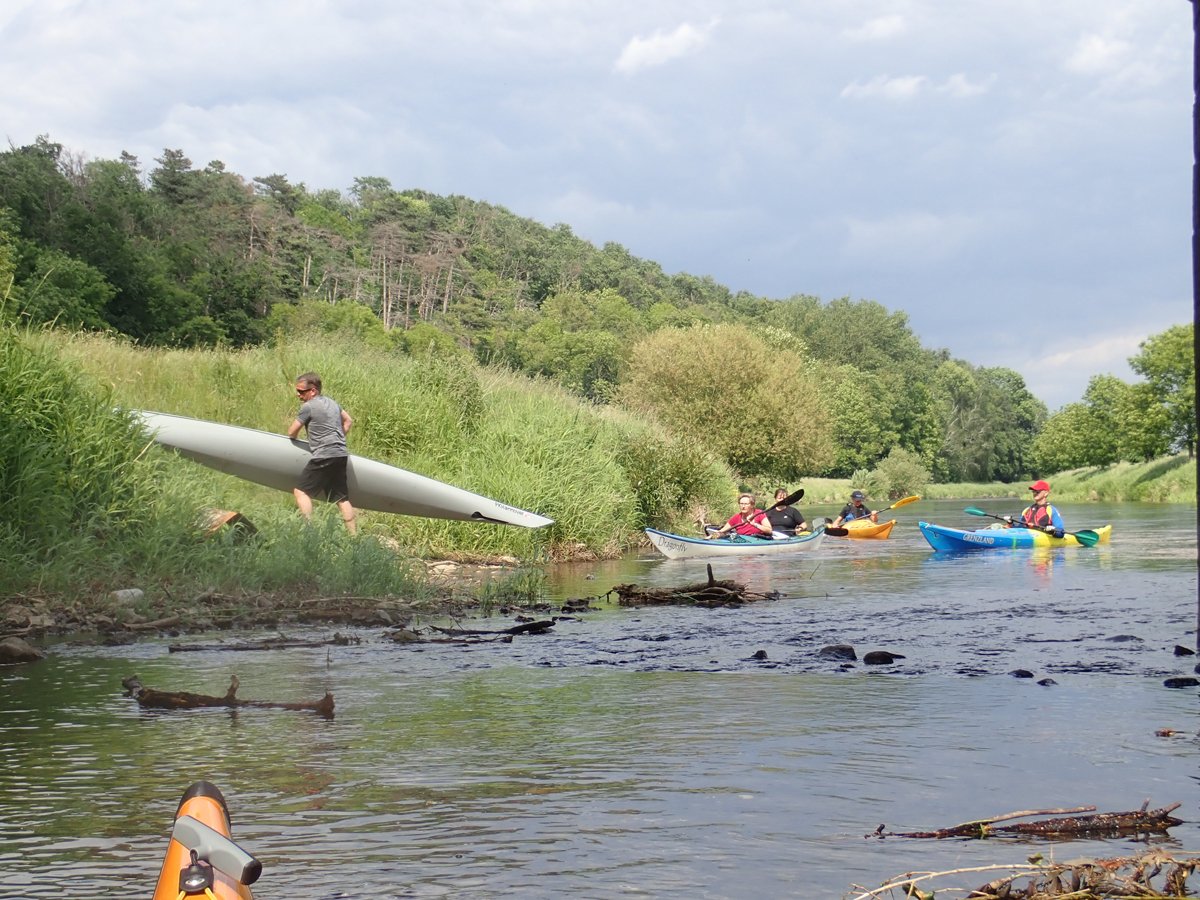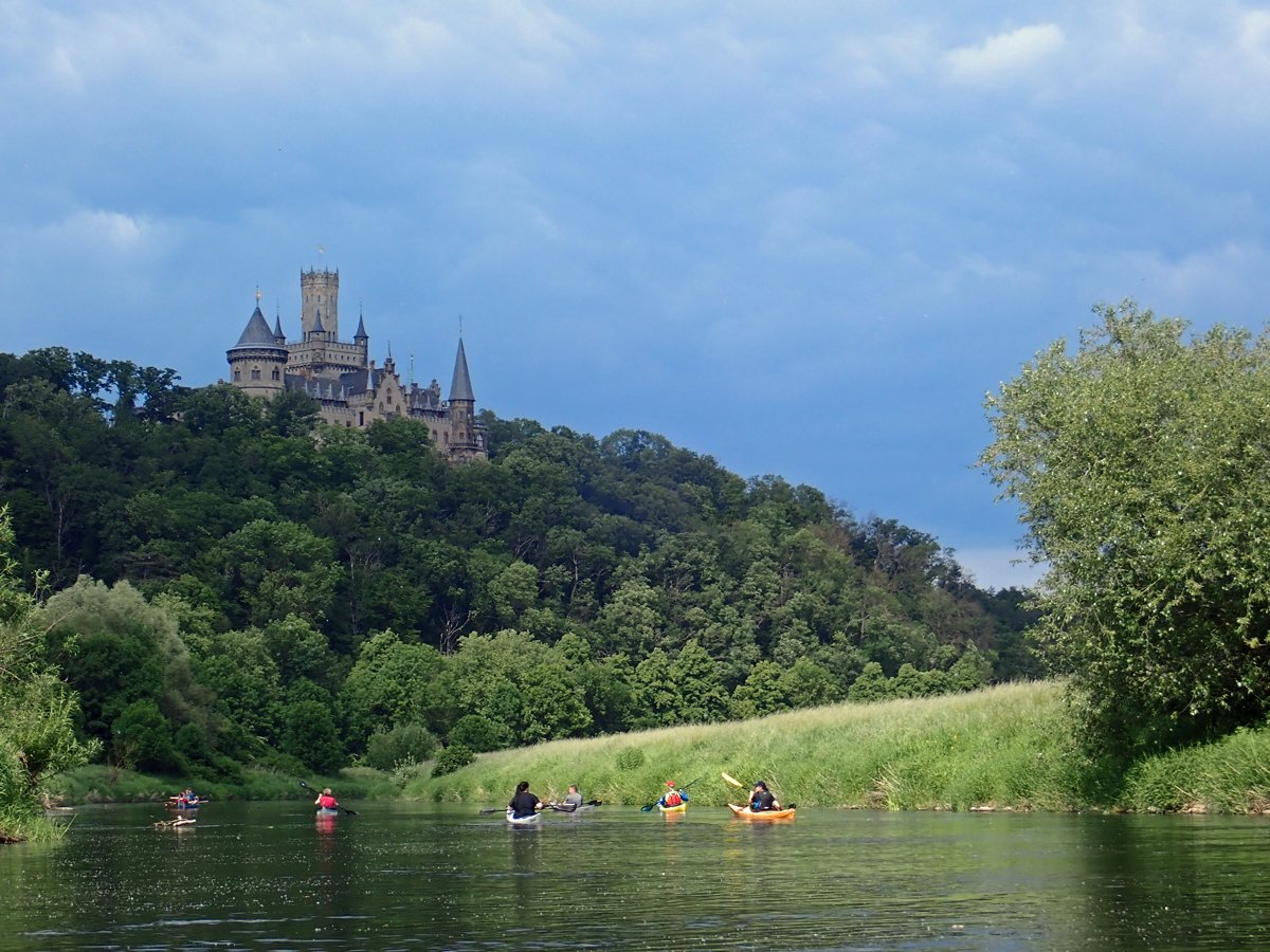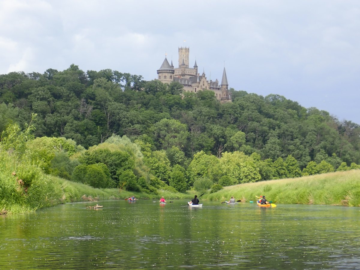 Der freie Donnerstag, 26.05.2022, wurde natürlich für eine Kanutour genutzt. Wir waren unterwegs auf dem langen Abschnitt der Leine von Alfeld bis zur Marienburg, rund 28 Kilometer. Auf der Strecke gibt es zwar vier Wehre recht mühsam zu umtragen, doch man wird auch mit einer landschaftlich lohnenswerten Fahrt im Leinebergland und durch ein Schutzgebiet, in dem die Leine recht frei mäandrieren kann, belohnt. Zum Schluss gibt es einen ausgezeichneten Blick auf das Schloss Marienburg, zu dessen Füssen die Tour endet. Außerdem: Eine Bootstaufe stand an.