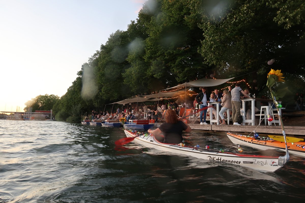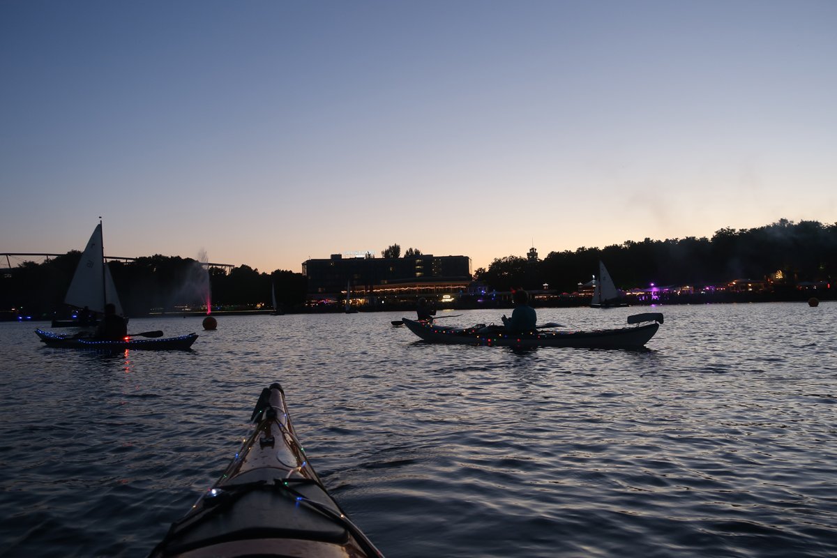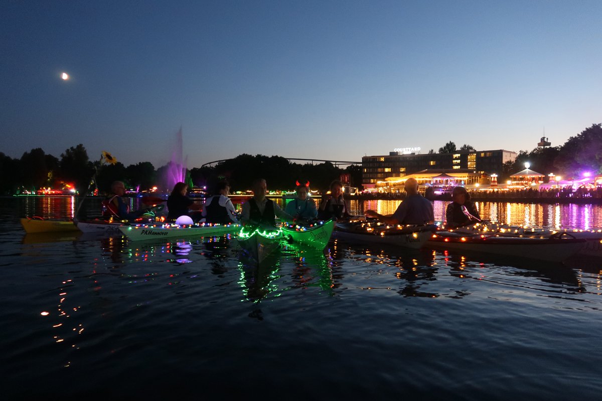 Bitte nicht nachmachen: Wir wissen, was wir mit Kajaks machen. Ungeübt sind Nachtfahrten risikoreich. Und zur Befahrung des Maschsees sind umfangreiche Regeln zu beachten, es darf zudem nicht jeder auf den See.