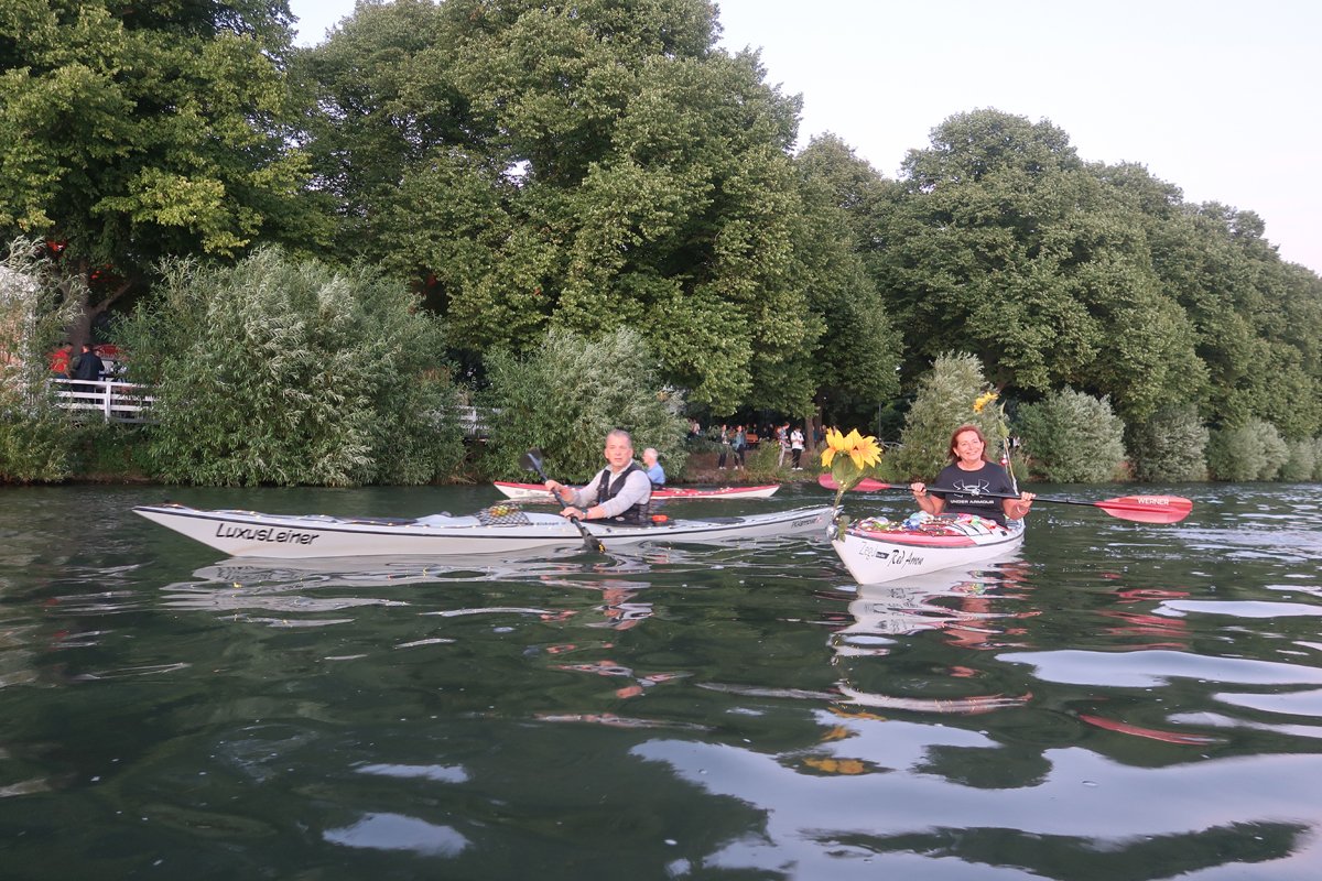 Nach zwei Jahren Pause fand dieses Jahr wieder das Maschseefest statt. Damit gab es bei uns auch wieder eine Fahrt, die ein beliebter Klassiker in unserem Programm ist: Gemeinsam geht es im Boot vom Bootshaus auf der Leine zum Südufer am Maschsee, dann werden die Boote umgesetzt und anschließend eine Seerunde gedreht. Danach geht es auf der Leine zurück.