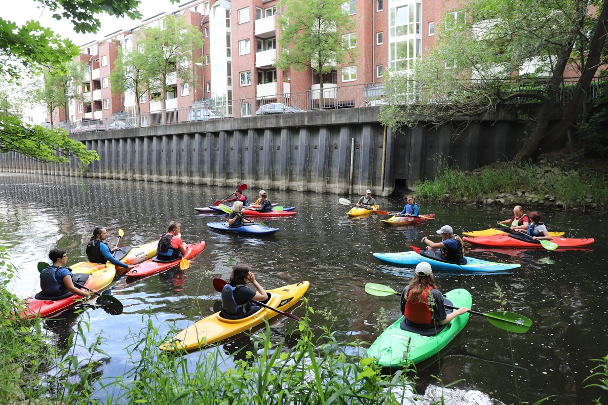 Der Paddel-Klub Hannover ist vom Deutschen-Kanu-Verband anerkannter Kanu-Ausbilder. Und das heißt, dass unsere gut ausgebildeten Trainer gerne ihr Wissen vermitteln und Kurse fürs Kajakfahren anbieten. Wir paddeln dabei mit Einerkajaks, also Booten für eine Person, die mit einem Doppelpaddel gesteuert werden. "Gesteuert" ist dabei ein wesentlicher Aspekt der Ausbildung. Ziel ist es, die richtige Technik zu lernen, damit am Ende des Kurses Paddler das Boot beherrschen und nicht die Boote die Paddelnden. Das ist jedoch zu Beginn meist so... Wir schulen dabei ganz bewußt in kleinen drehfreudigen Kajaks, die viel Feedback zur eigenen Technik geben und damit ein optimalen Kursverlauf erlauben. Ein erfolgreiches Konzept, mit dem wir auch dieses Jahr wieder drei Kurse durchgeführt haben, die alle kurz nach Beginn der Anmeldemöglichkeit ausgebucht waren. Im nächsten Jahr setzen wir das Angebot sicher fort. Infos gibt es im ersten Quartal auf dieser Seite, hier erst einmal ein paar Einblicke ins Kursgeschehen.