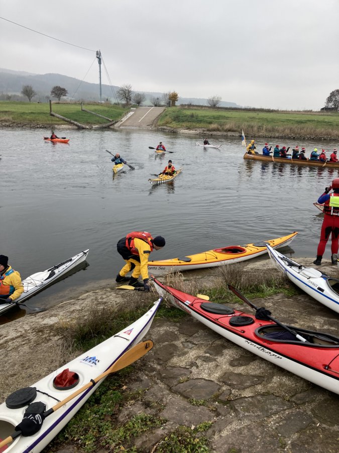 Die Rintelner Eisfahrt auf der Weser von Hameln nach Rinteln ist ein Klassiker im DKV-Sportprogramm. 2020 und 2021 musste sie corona-bedingt ausfallen, in 2022 fand sie wieder im kleineren Rahmen statt. Wir waren natürlich mit dabei. Da es die Glühweinbude an der Fähre Großenwieden dieses Jahr nicht gab, kümmerten wir uns gut vorbereitet selbst darum.