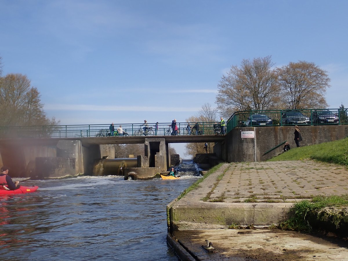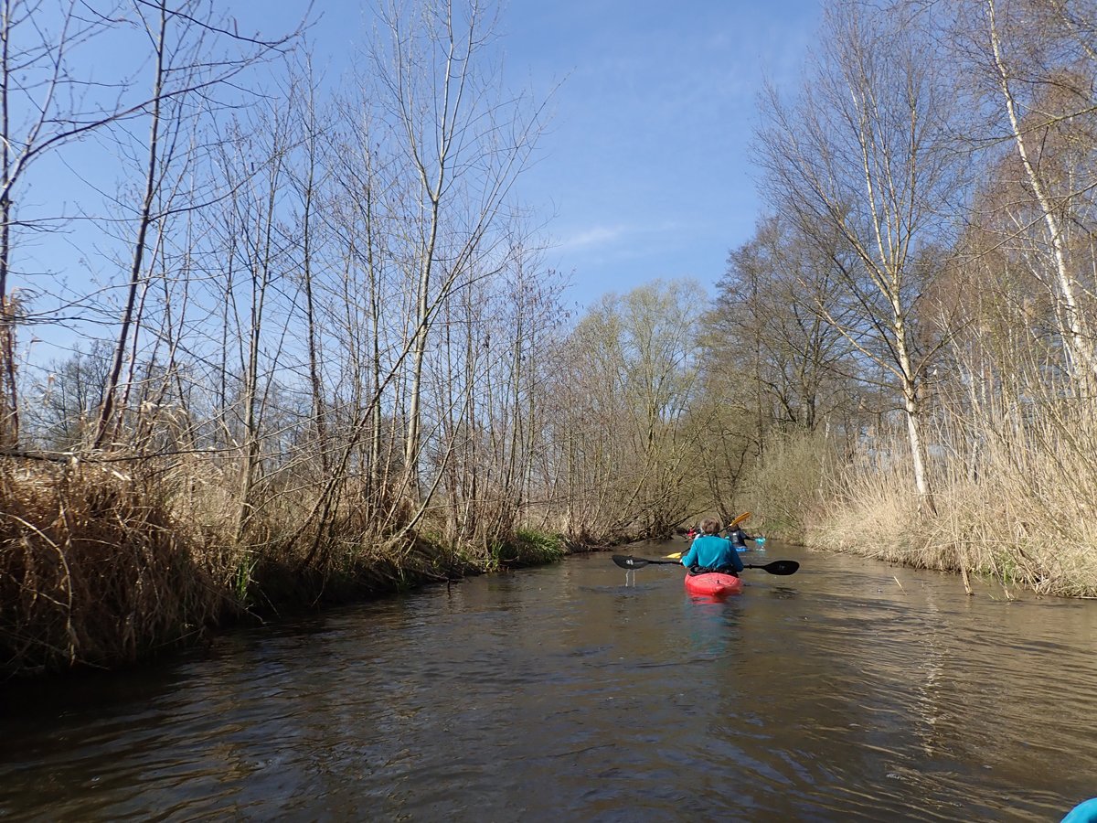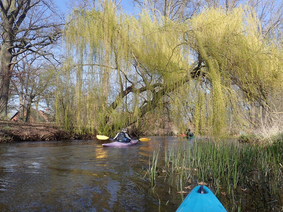 Eigentlich ideal für eine Rundfahrt: Von Langlingen aus auf dem Wienhäuser Mühlenkanal bis nach Wienhausen. Dort geht es weiter in die Aller und wieder nach Langlingen zurück. Die Strömung auf der Aller sollte für eine Bergfahrt nicht so hoch sein, da es unterwegs zwei Wehre gibt, die die Aller aufstauen. Soweit die Theorie. In der Praxis hatte auch die Aller noch einen guten Wasserstand, da floss es munter über die Wehre und staute nur wenig. In der Folge war die Rückfahrt auf der Aller reichlich sportlich.