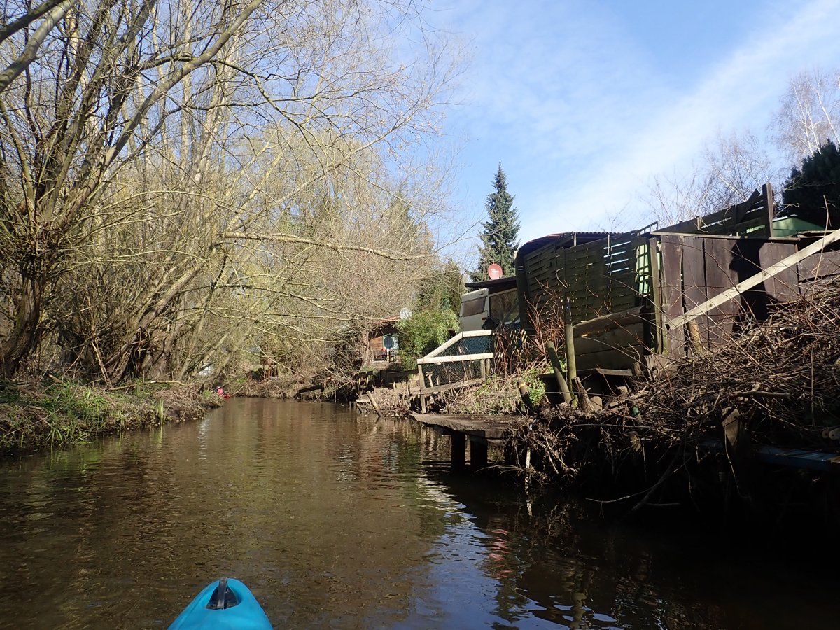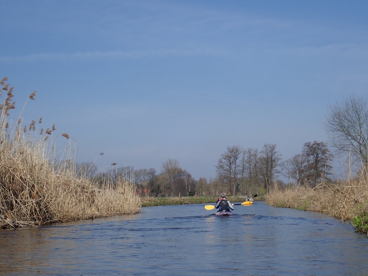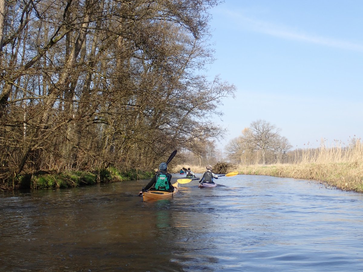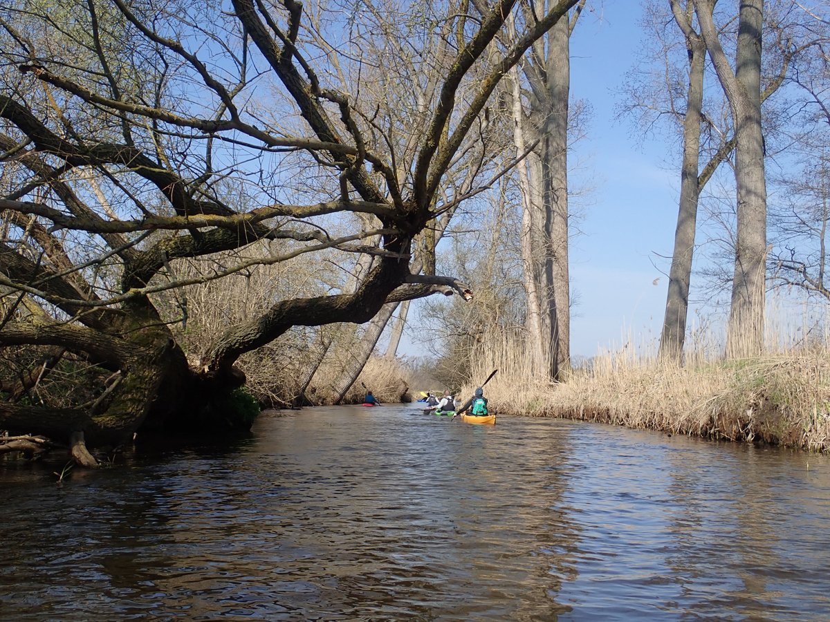 Eigentlich ideal für eine Rundfahrt: Von Langlingen aus auf dem Wienhäuser Mühlenkanal bis nach Wienhausen. Dort geht es weiter in die Aller und wieder nach Langlingen zurück. Die Strömung auf der Aller sollte für eine Bergfahrt nicht so hoch sein, da es unterwegs zwei Wehre gibt, die die Aller aufstauen. Soweit die Theorie. In der Praxis hatte auch die Aller noch einen guten Wasserstand, da floss es munter über die Wehre und staute nur wenig. In der Folge war die Rückfahrt auf der Aller reichlich sportlich.