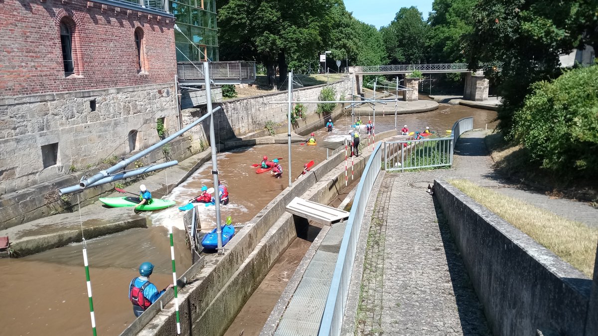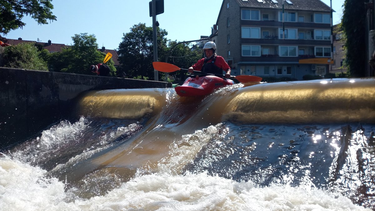 Insider wissen: "BiMü" steht für Bischofsmühle. Das wiederum ist unser Schlagwort für die Wildwassertrainingsanlage mitten in Hildesheim. Einmal im Jahr mieten wir die Anlage möglichst als alleiniger Nutzer und richten für alle PKH-Mitglieder ein großes Wildwasser-Wochenende aus.