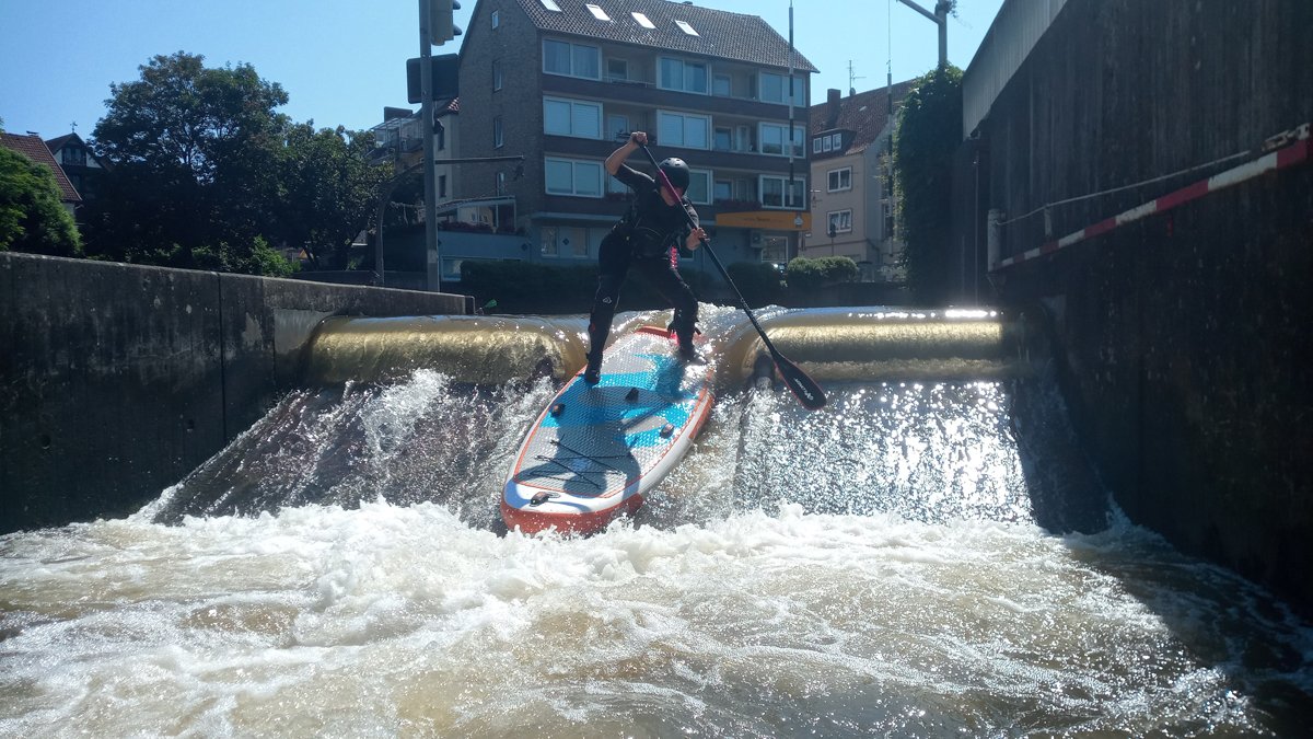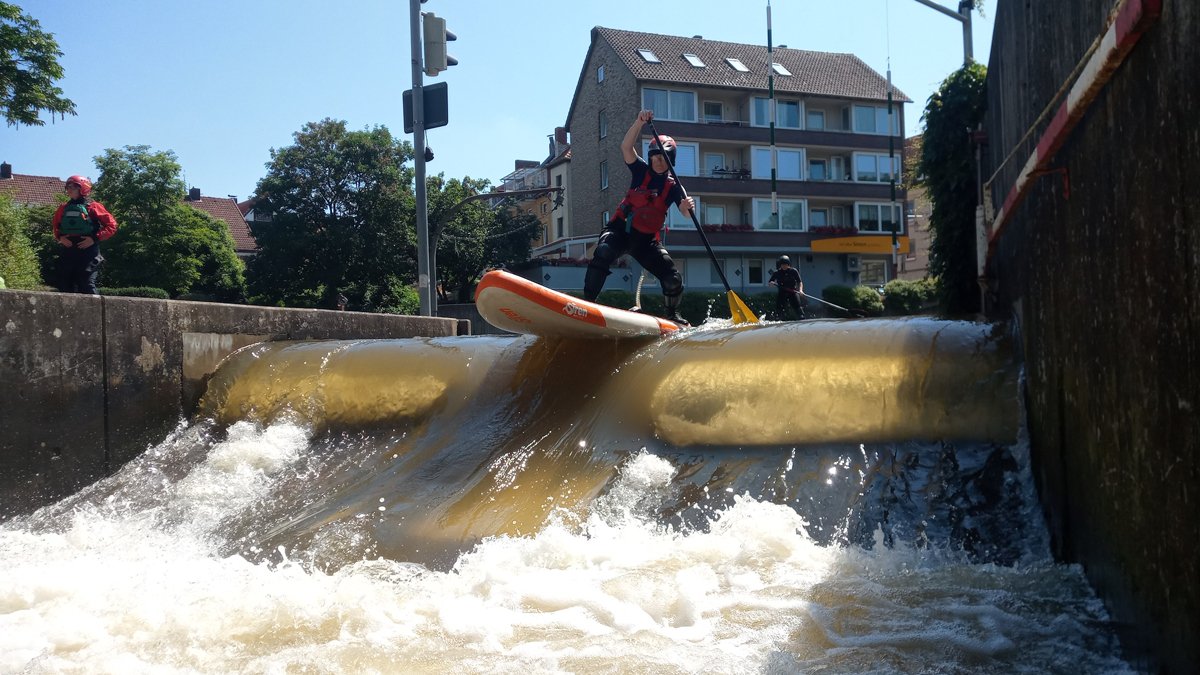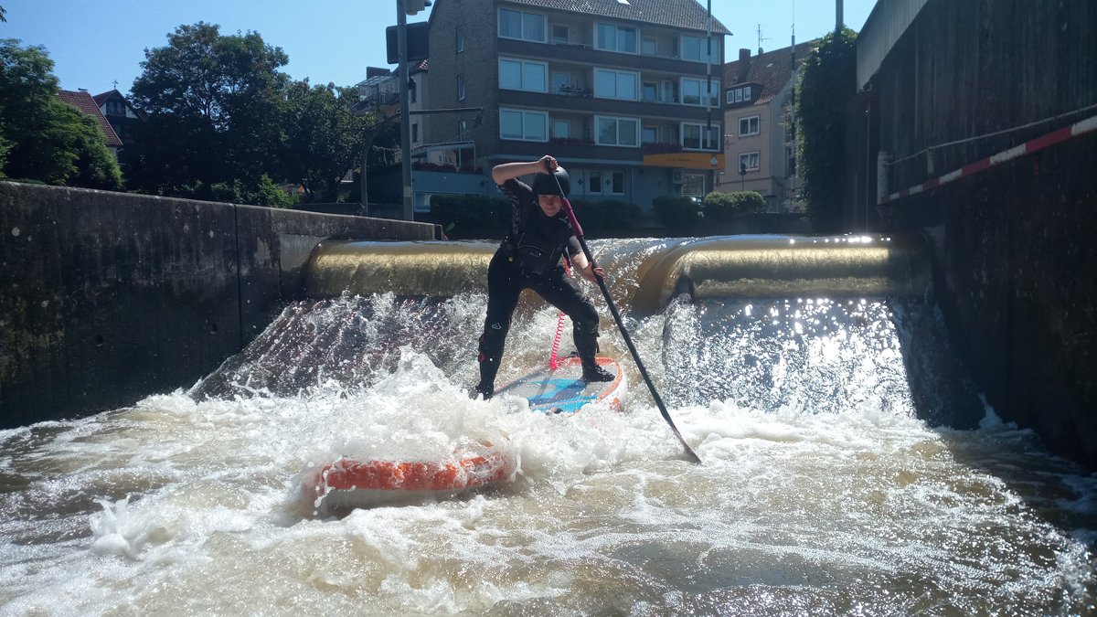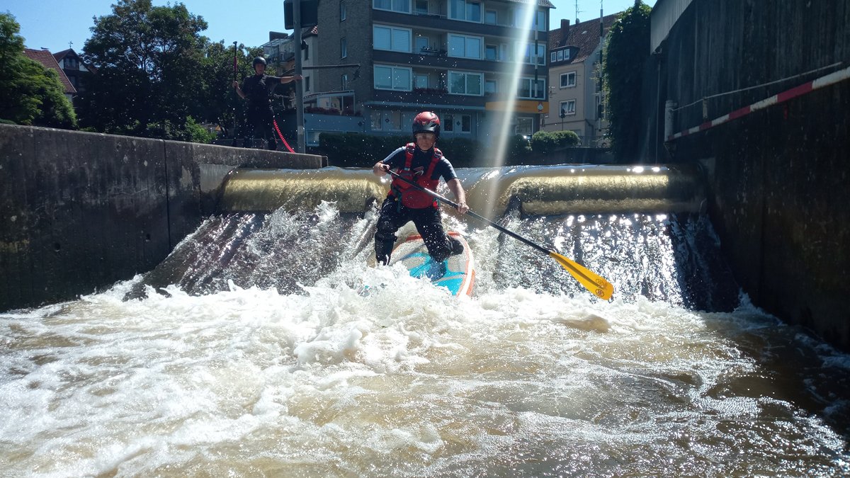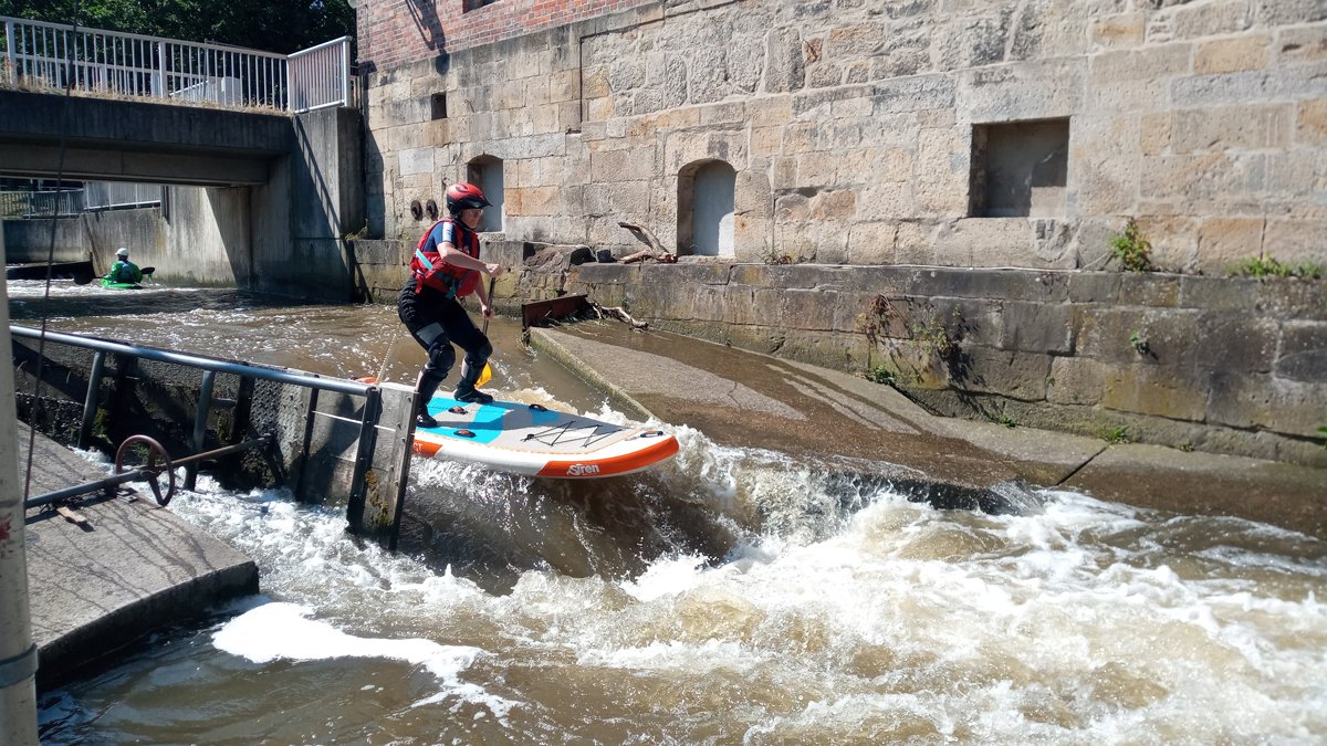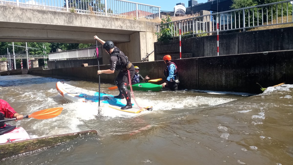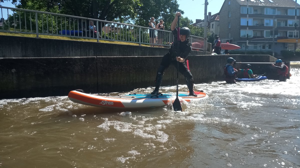 Stand-Up-Paddling (SUP) ist für die meisten von uns eine Sportart auf dem Zahmwasser, ideal auf der leine am PKH, oder auf dem See. Doch dass auch Wildwasser-SUP funktioniert, konnte so manch erfahrender Wildwasser-Kajaker während unseres Trainingswochenendes auf der BiMü sehen.