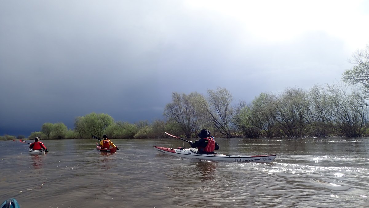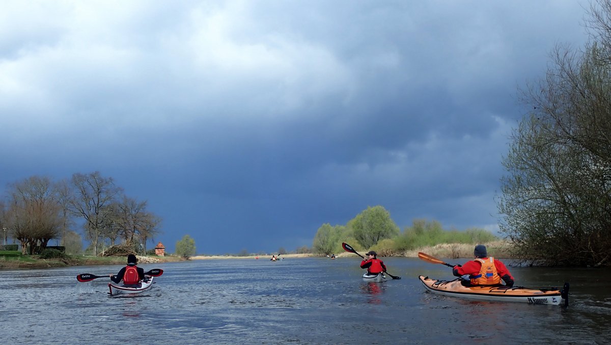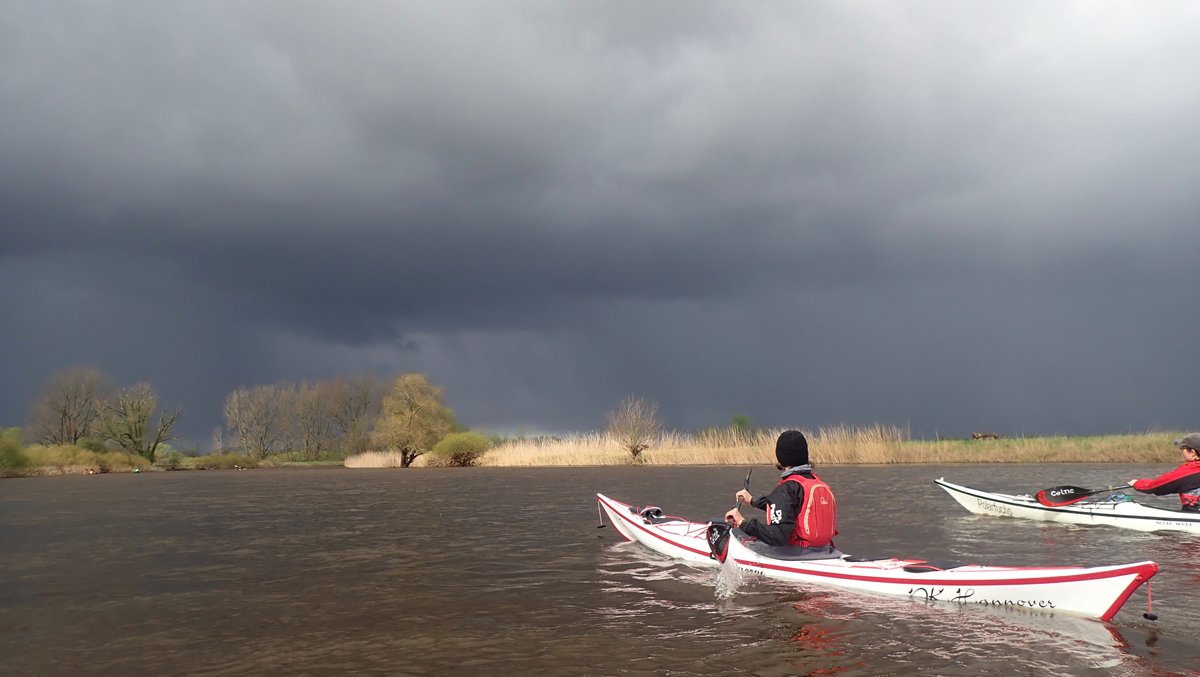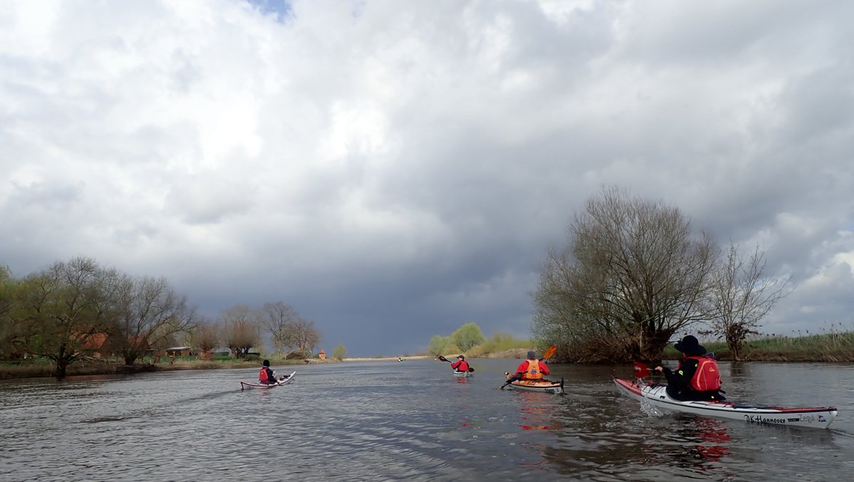 Der Wassersportverein Verden richtet jährlich Ende März die Aller-Hochwasser-Rallye aus. Der PKH war auf den Streckenabschnitten von Hodenhagen nach Verden (55km) und Rethem nach Verden (31km) mit dabei. Die Strecke gilt als anspruchsvoll - nicht wegen des Schwierigkeitsgrads des Gewässers, sondern weil das Land hier sehr offen ist und immer mit viel (Gegen-)Wind zu rechnen ist. So auch diesmal mit häufig 5 Windstärken. Das war aber nicht alles. Regen und mindestens drei intensive Hagelschauer erlaubten nicht nur Fluss, sondern auch Wetter voll zu erleben.