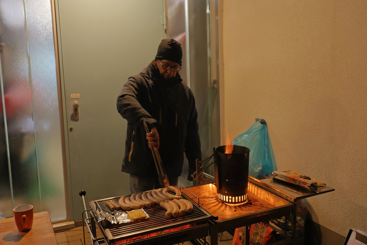 Irgendwie so um 0 Grad Celsius da draussen... Da muss man sich ja aufwärmen. Beim Wintergrillen am Abend am Bootshaus geht das ganz hervorragend.