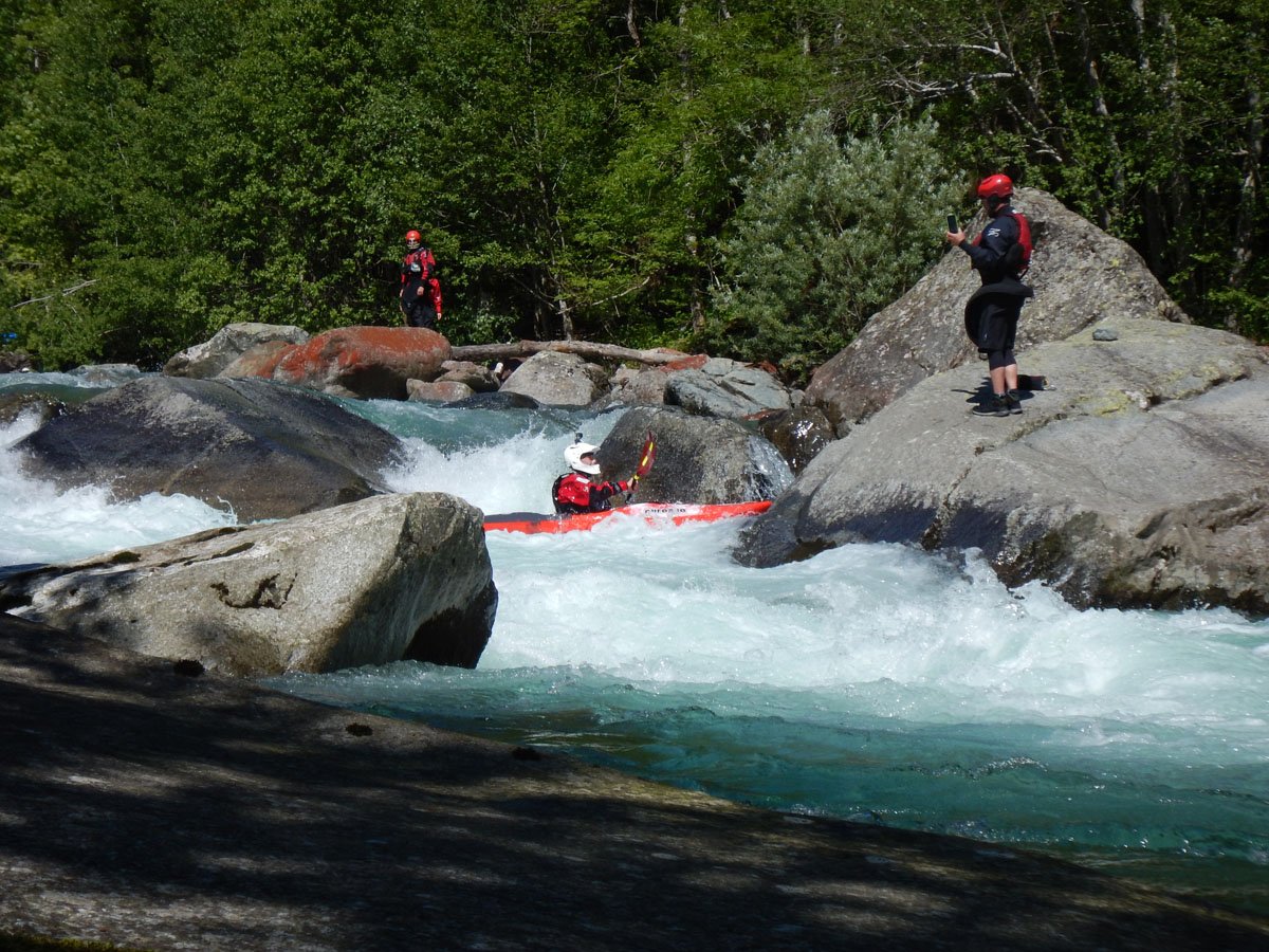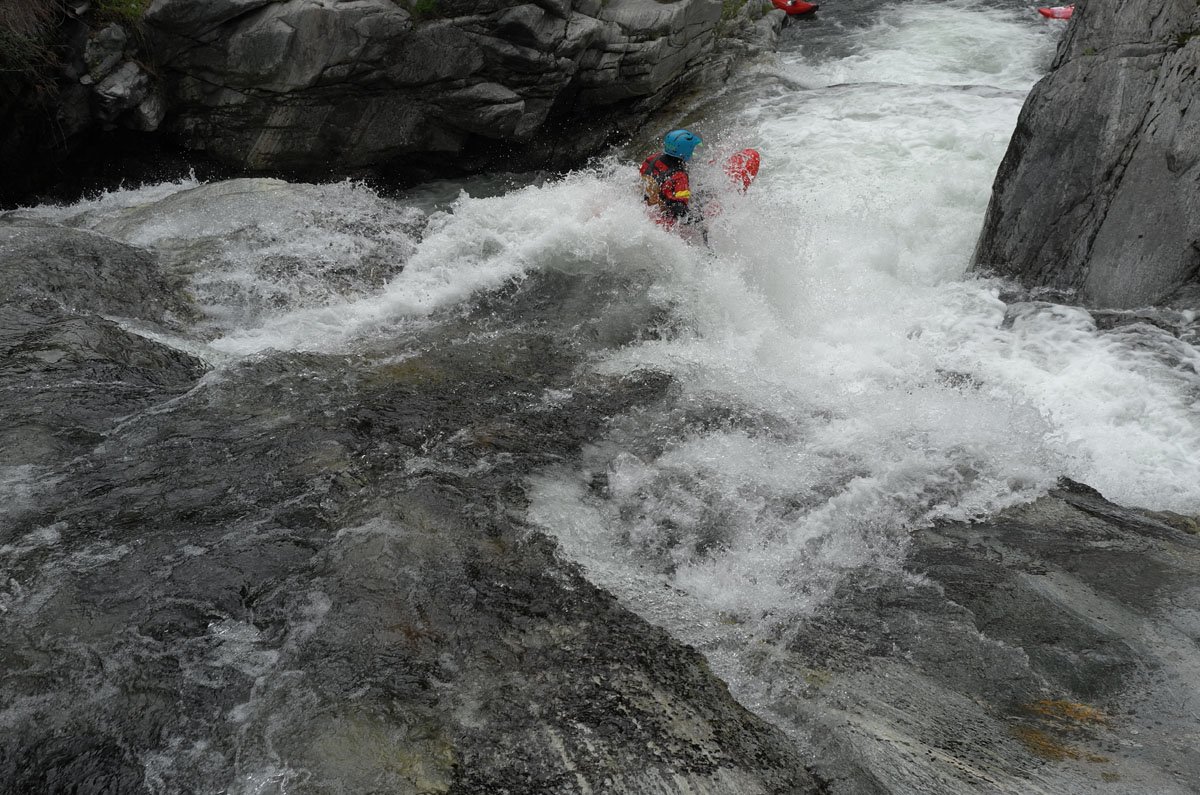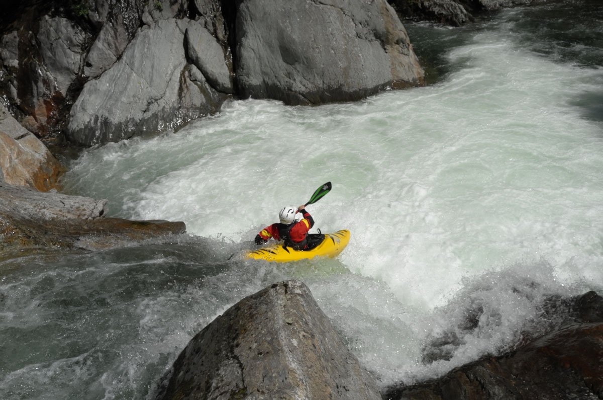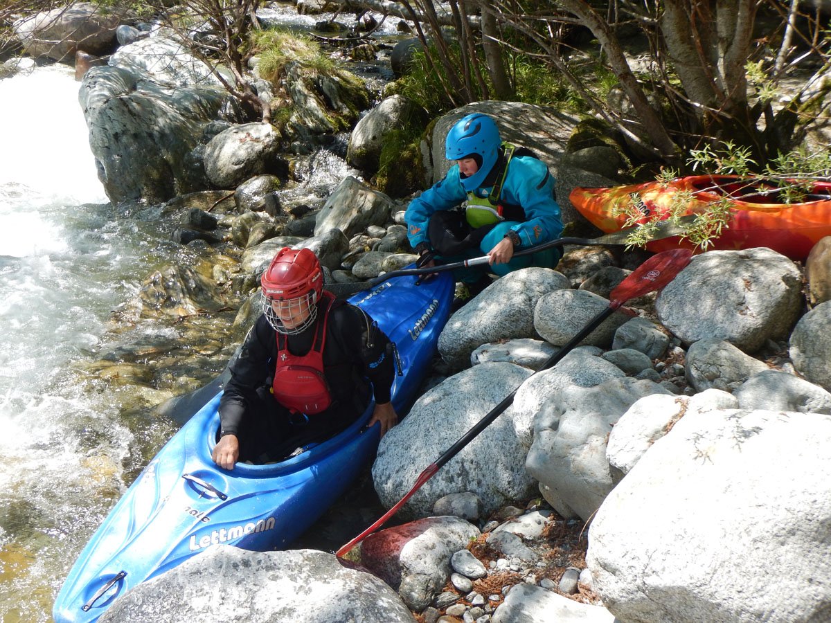Die Wildwasser-Tour in den Tessin / Piemont sollte mal etwas ganz anderes werden. Und das war in erster Linie von mehreren Faktoren bestimmt: Es sollte nicht nur ein erstklassiger Wildwasser-Urlaub werden, sondern auch ein Traning, dass einen an eigene Grenzen führte und vielleicht auch mal darüber hinaus. Schon bei der Eingangsvoraussetzung dürfte der eine oder andere zucken: Sicheres Fahren von Wildwasser IV ist angesagt. In dieser kleinen PKH-Gruppe buchte man nun einen Privatkurs bei der renommierten Wildwasser-Schule von Bernhard Steidl - Source2Sea. Und dann schulte der Chef persönlich.