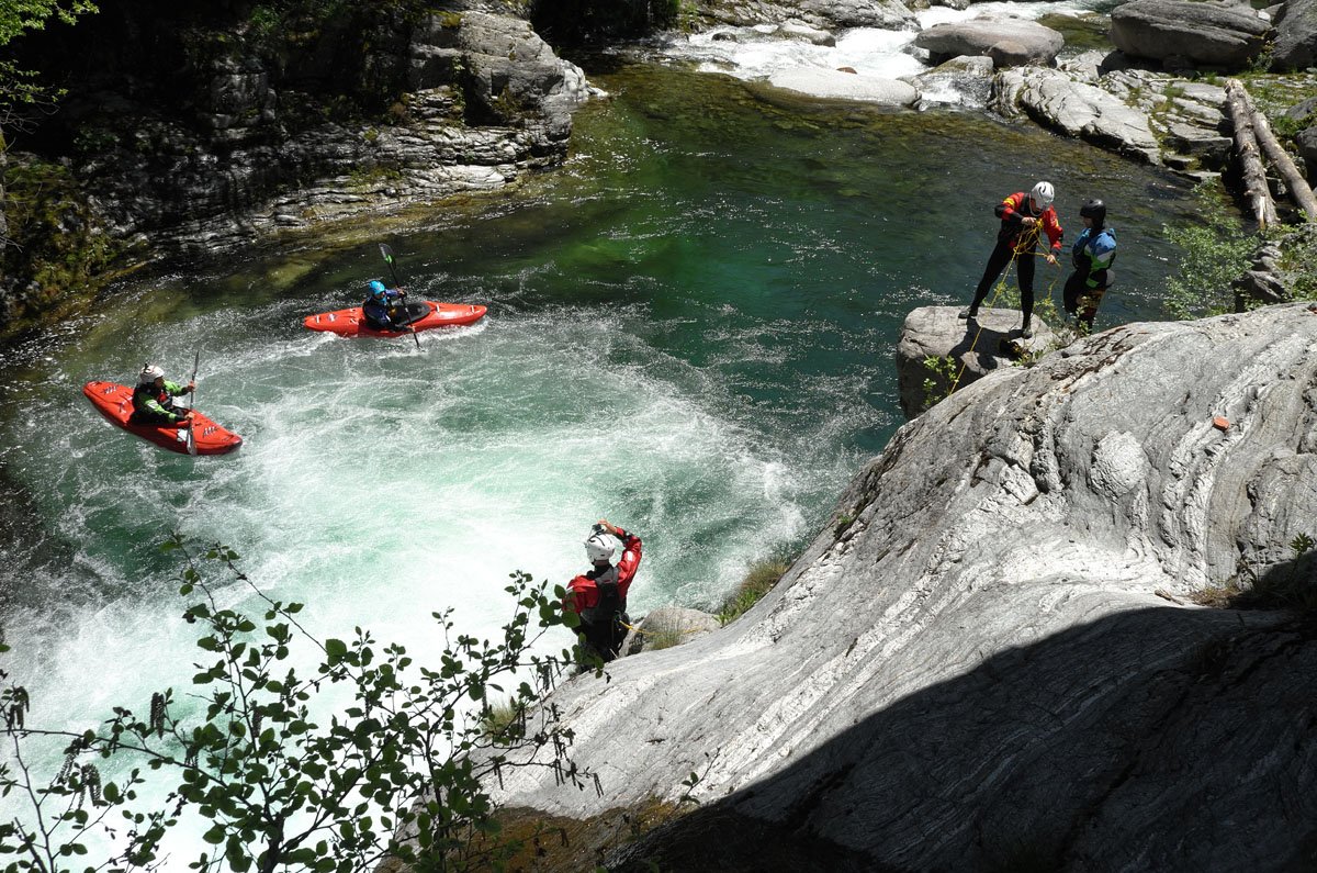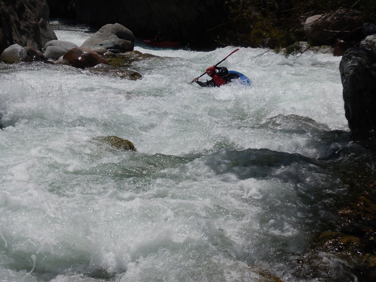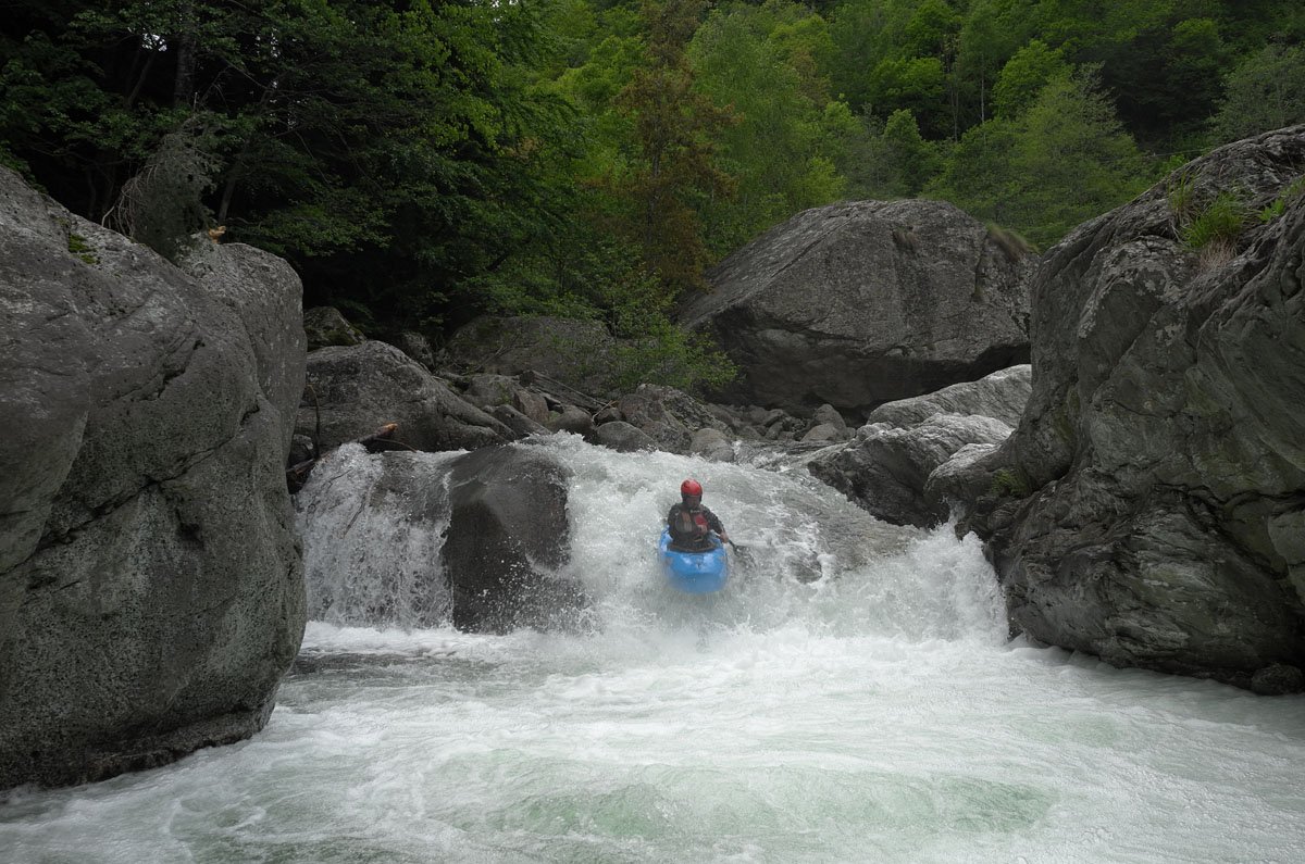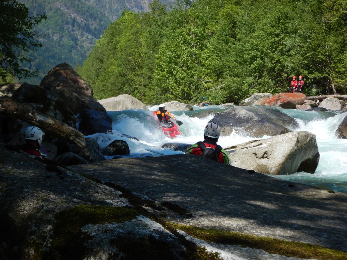Die Wildwasser-Tour in den Tessin / Piemont sollte mal etwas ganz anderes werden. Und das war in erster Linie von mehreren Faktoren bestimmt: Es sollte nicht nur ein erstklassiger Wildwasser-Urlaub werden, sondern auch ein Traning, dass einen an eigene Grenzen führte und vielleicht auch mal darüber hinaus. Schon bei der Eingangsvoraussetzung dürfte der eine oder andere zucken: Sicheres Fahren von Wildwasser IV ist angesagt. In dieser kleinen PKH-Gruppe buchte man nun einen Privatkurs bei der renommierten Wildwasser-Schule von Bernhard Steidl - Source2Sea. Und dann schulte der Chef persönlich.