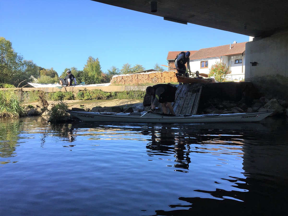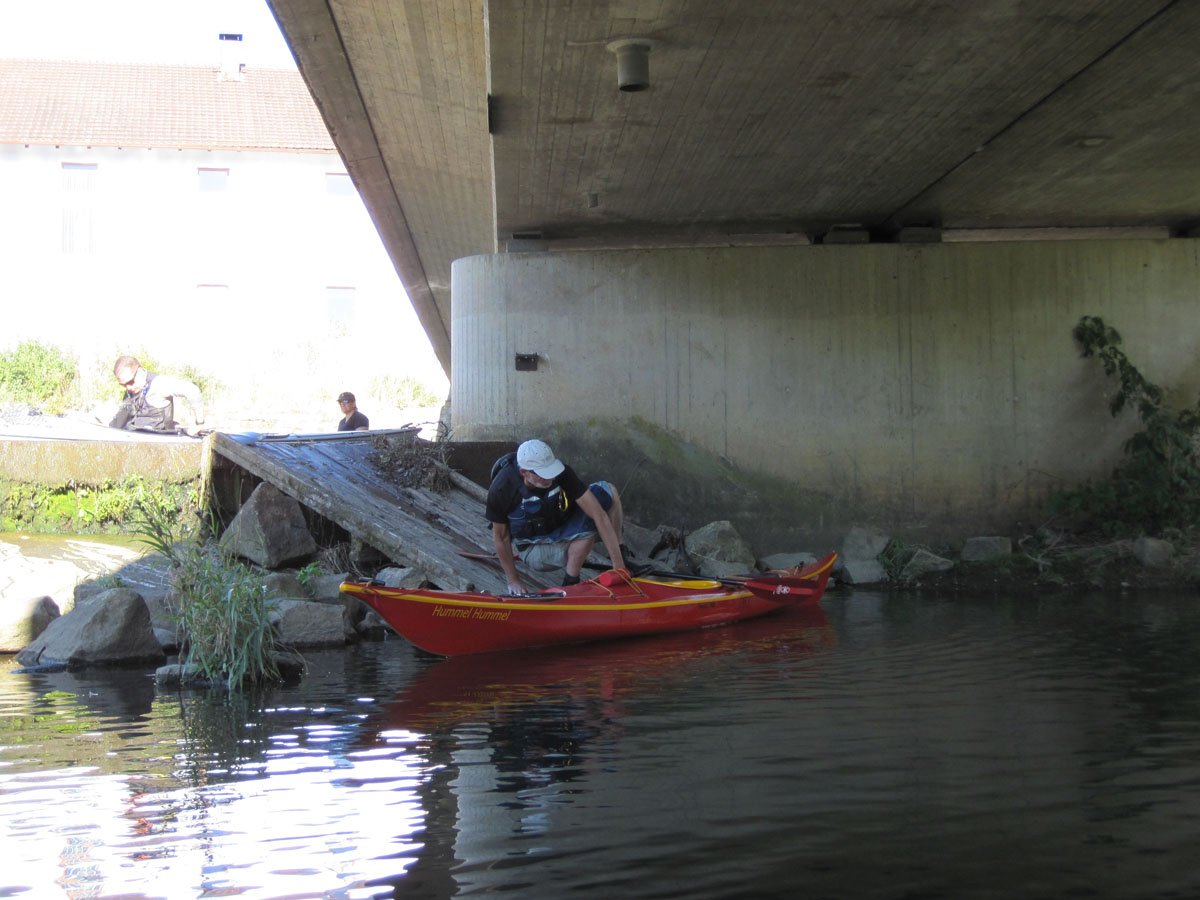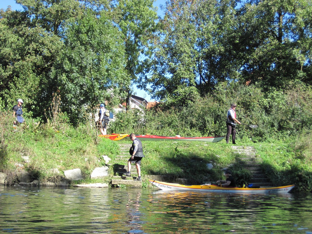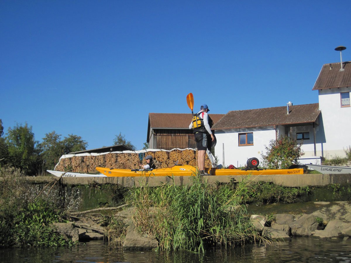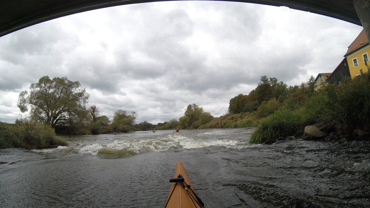 Naab: Diese Tour war die erste von vier Fahrten. Es ging auf der Naab von Münchshofen bis Pielenhofen statt. Es gab vier Wehre: Burglengenfeld (lange mit Bootswagen umtragen), Schirndorfer Mühle (sportlich auf undefinierbaren Wegen umklettern), Kallmünz (verbraucherfreundlich mit Treppen und kurzen Wegen) und Heitzenhofen (noch kürzerer Weg). Landschaftlich gab es viel zu sehen. Trotz Niedrigwasser ist die Naab kein tiefer Graben.