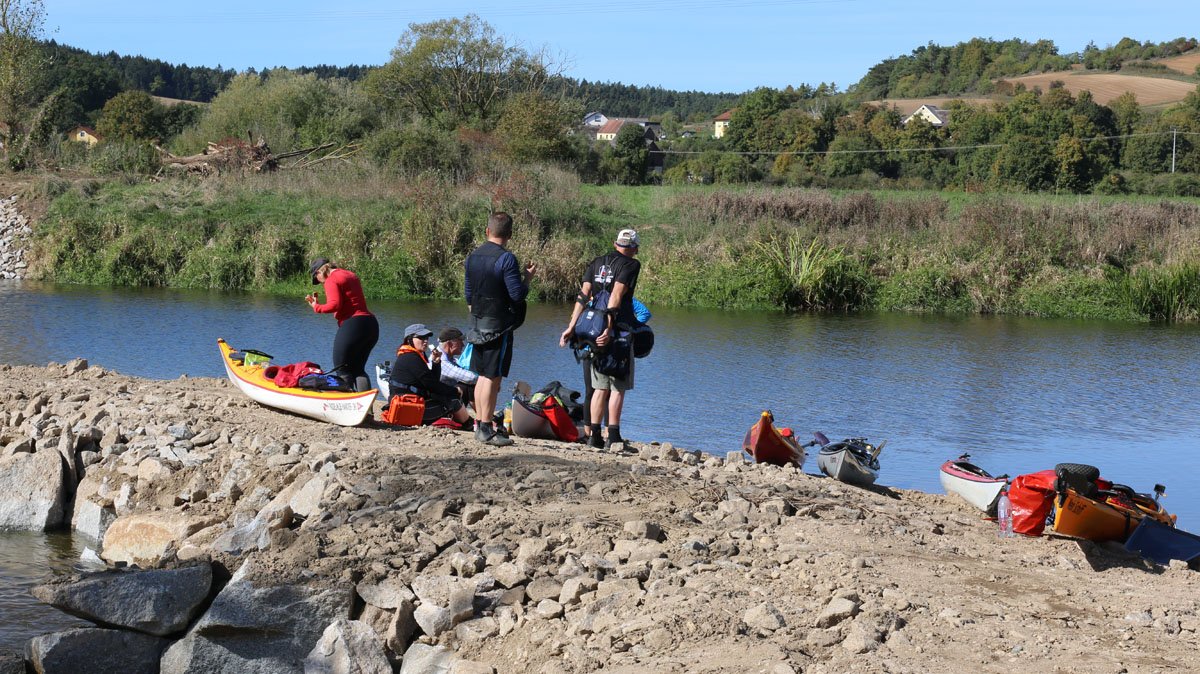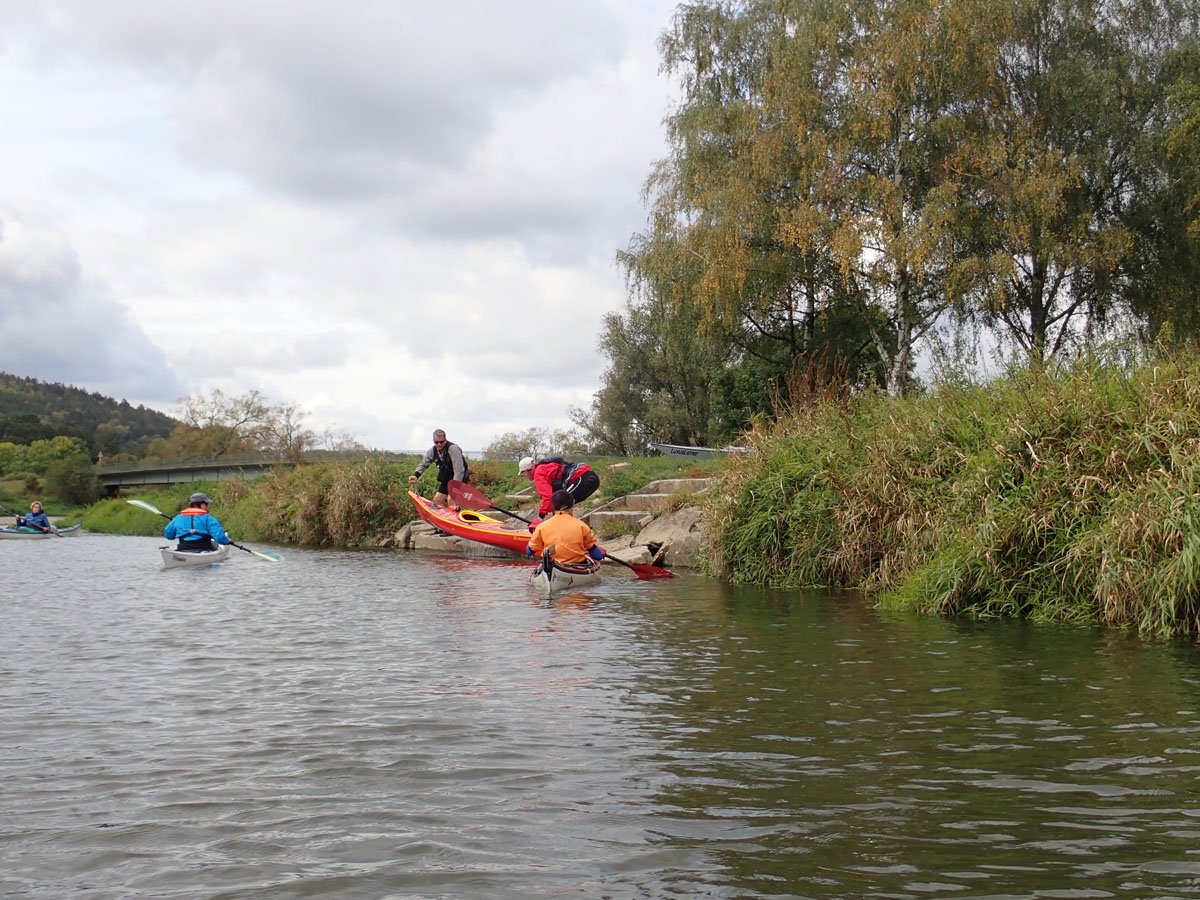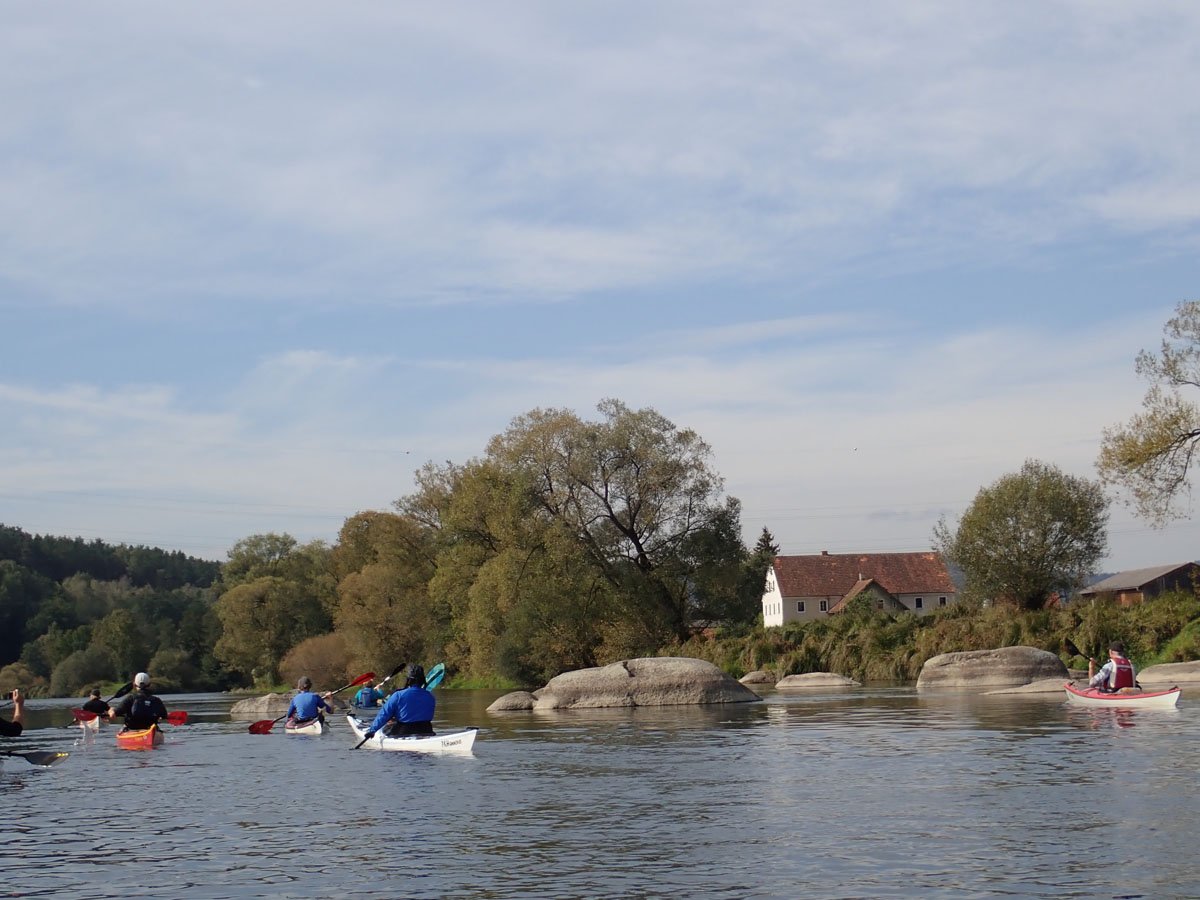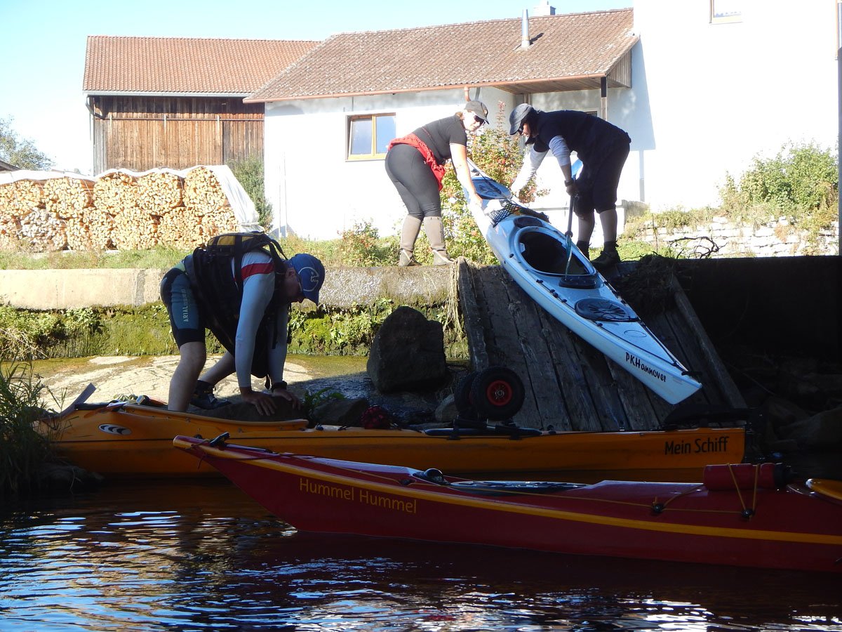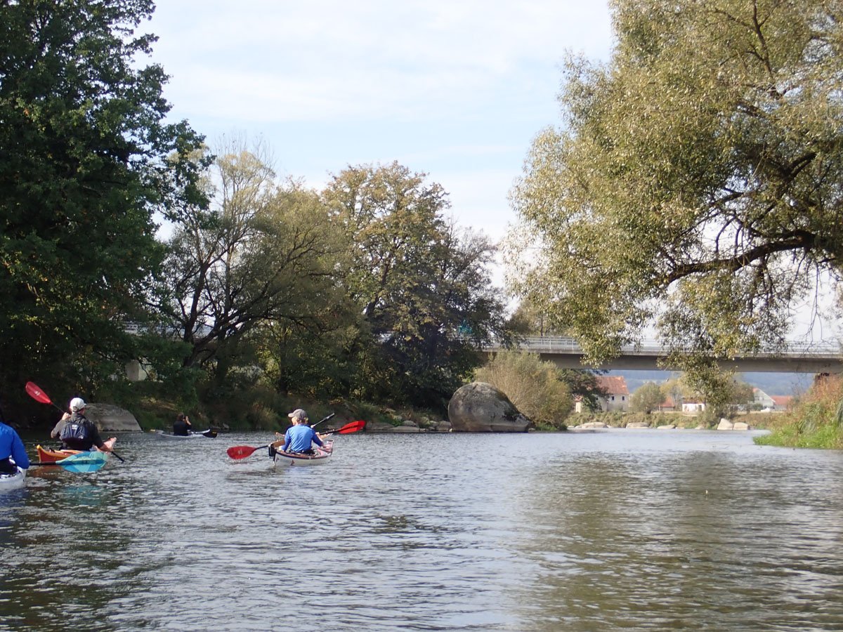 Naab: Diese Tour war die erste von vier Fahrten. Es ging auf der Naab von Münchshofen bis Pielenhofen statt. Es gab vier Wehre: Burglengenfeld (lange mit Bootswagen umtragen), Schirndorfer Mühle (sportlich auf undefinierbaren Wegen umklettern), Kallmünz (verbraucherfreundlich mit Treppen und kurzen Wegen) und Heitzenhofen (noch kürzerer Weg). Landschaftlich gab es viel zu sehen. Trotz Niedrigwasser ist die Naab kein tiefer Graben.