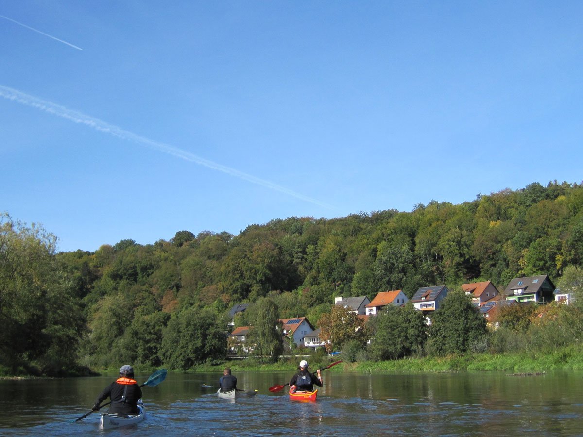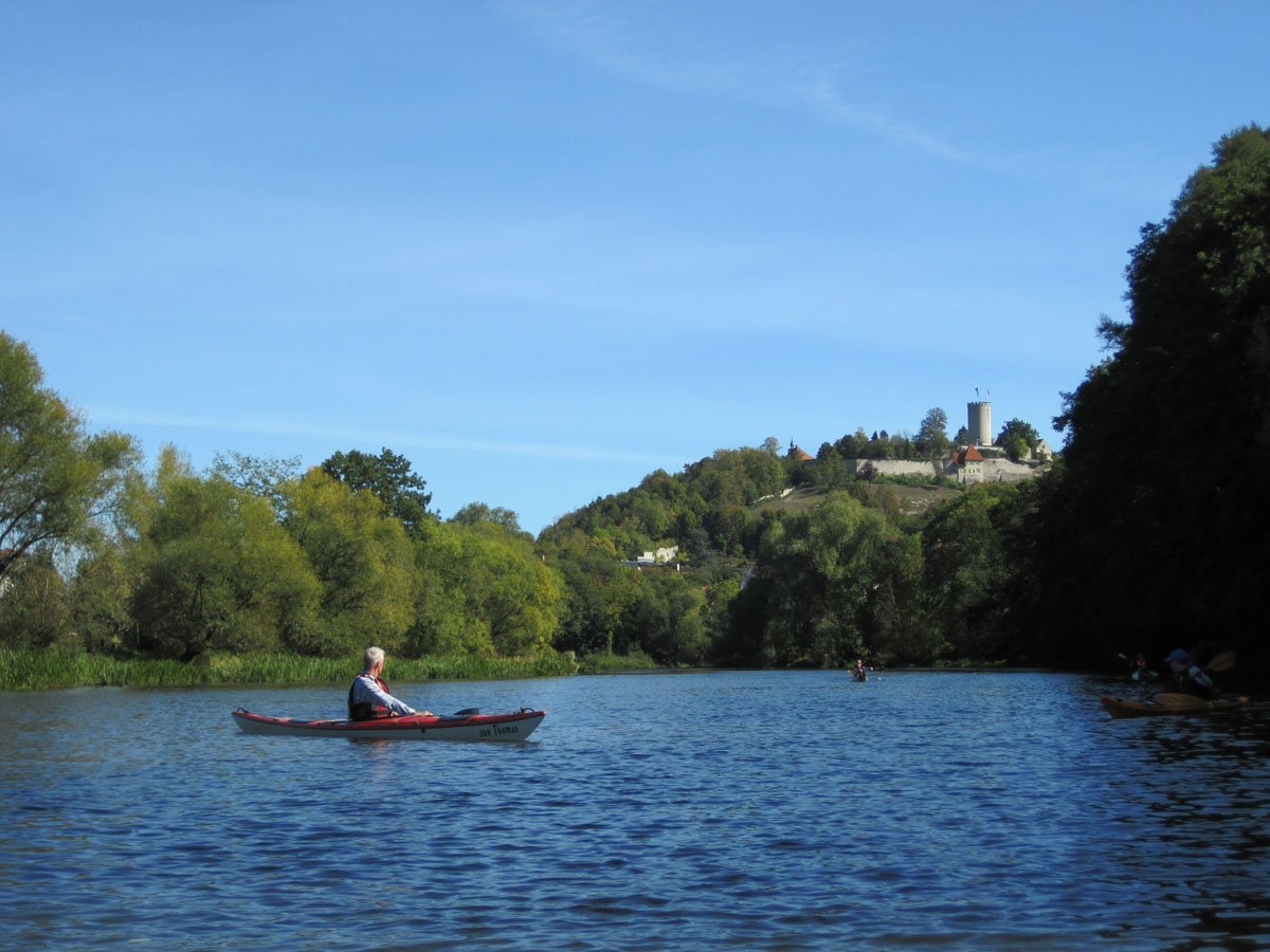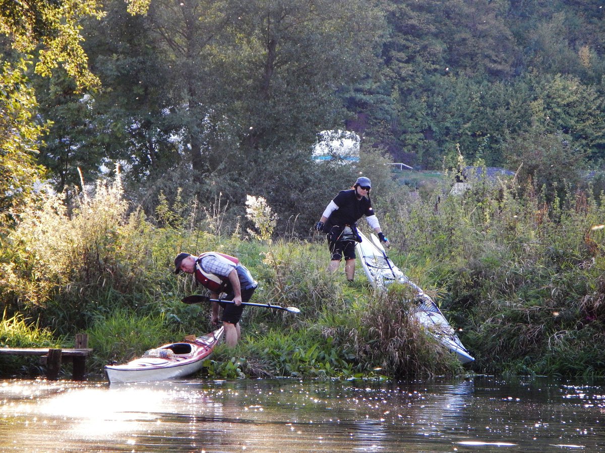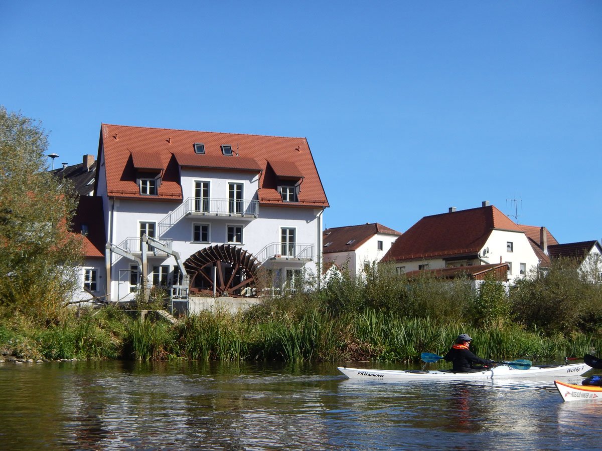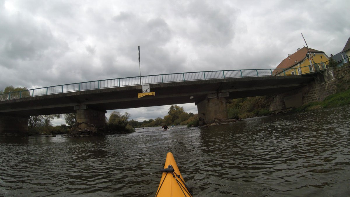 Naab: Diese Tour war die erste von vier Fahrten. Es ging auf der Naab von Münchshofen bis Pielenhofen statt. Es gab vier Wehre: Burglengenfeld (lange mit Bootswagen umtragen), Schirndorfer Mühle (sportlich auf undefinierbaren Wegen umklettern), Kallmünz (verbraucherfreundlich mit Treppen und kurzen Wegen) und Heitzenhofen (noch kürzerer Weg). Landschaftlich gab es viel zu sehen. Trotz Niedrigwasser ist die Naab kein tiefer Graben.