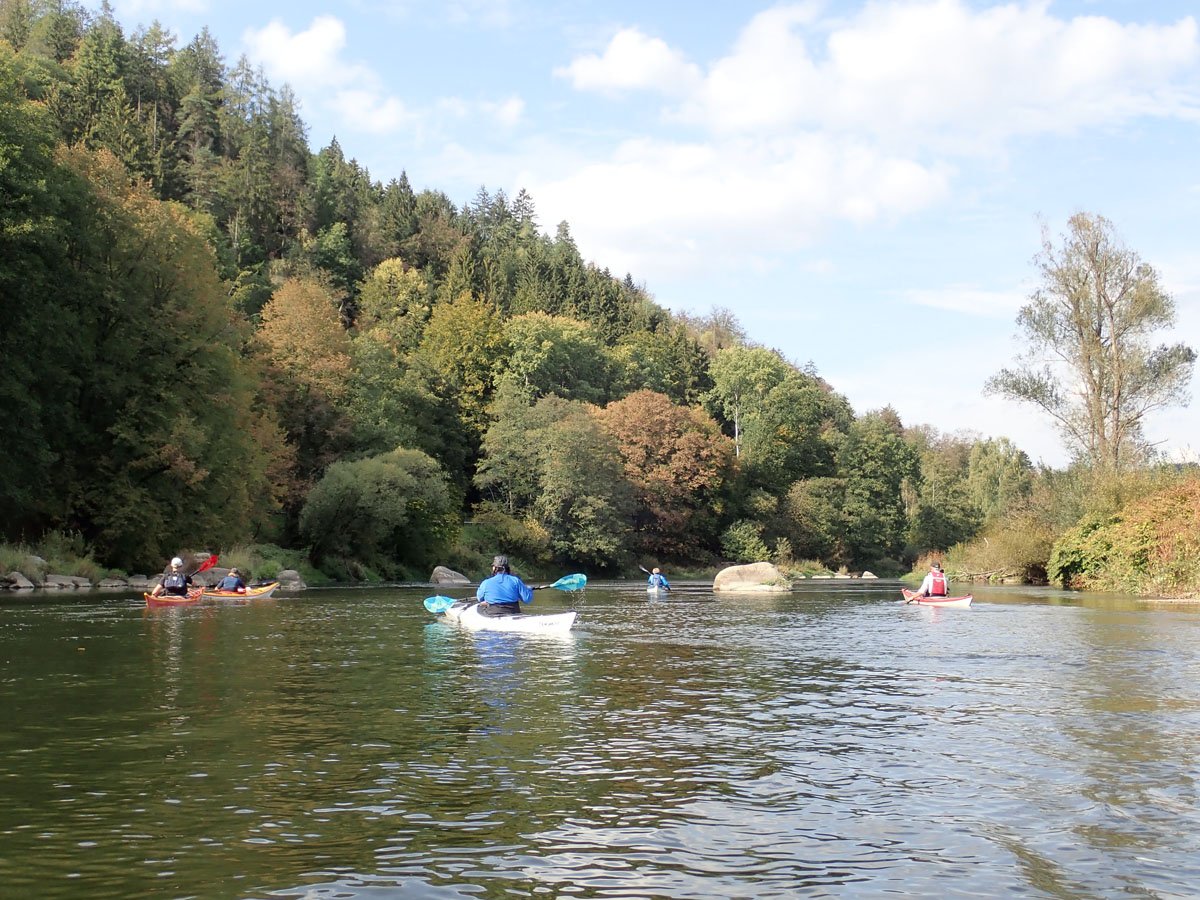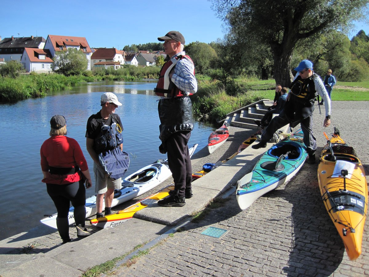 Die Entdeckertour Oberpfalz führte uns nach Bayern und zu drei Gewässern, die keiner der Teilnehmer vorher gepaddelt war - eine echte Entdeckerfahrt: Naab, Vils und Regen. Als Komfortaspekt wurde statt im Zelt in Gasthöfen nahe am Gewässer übernachtet.
