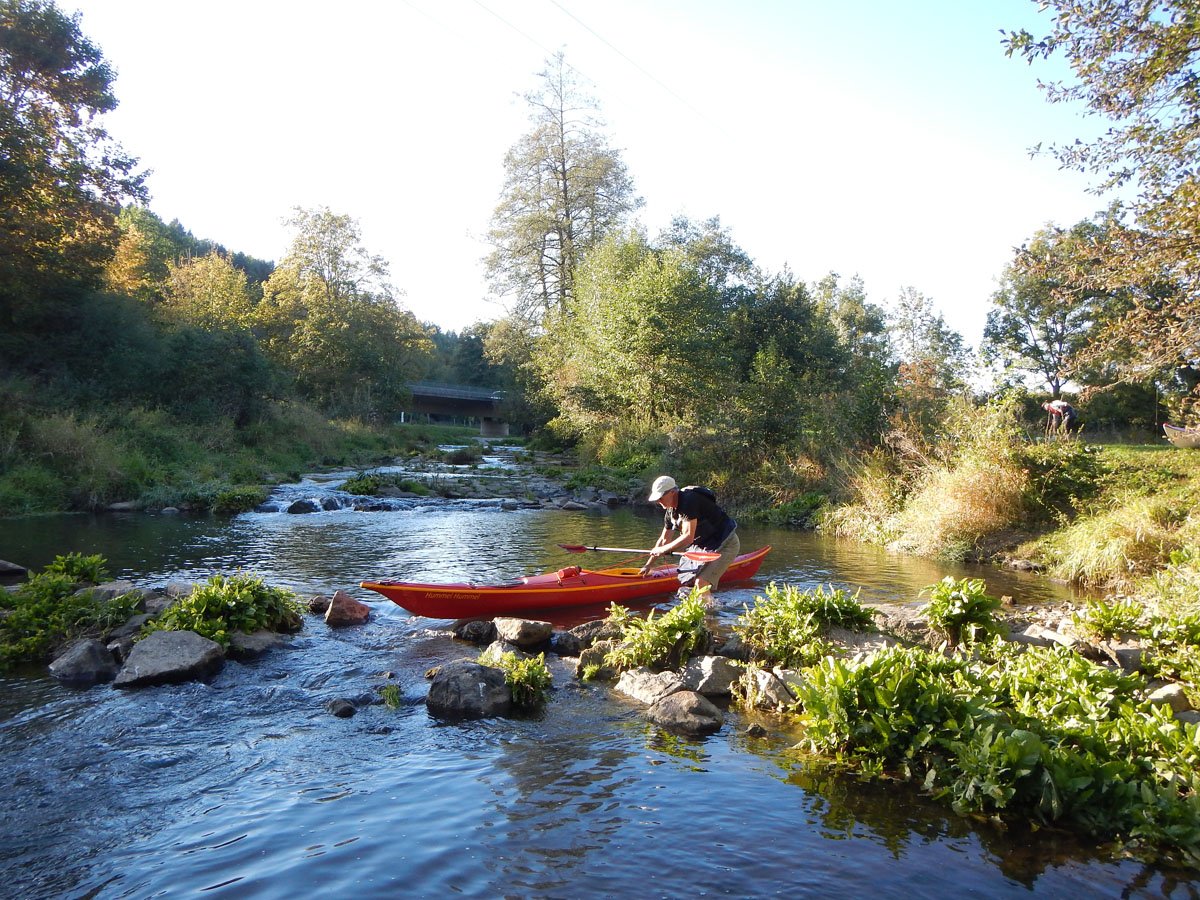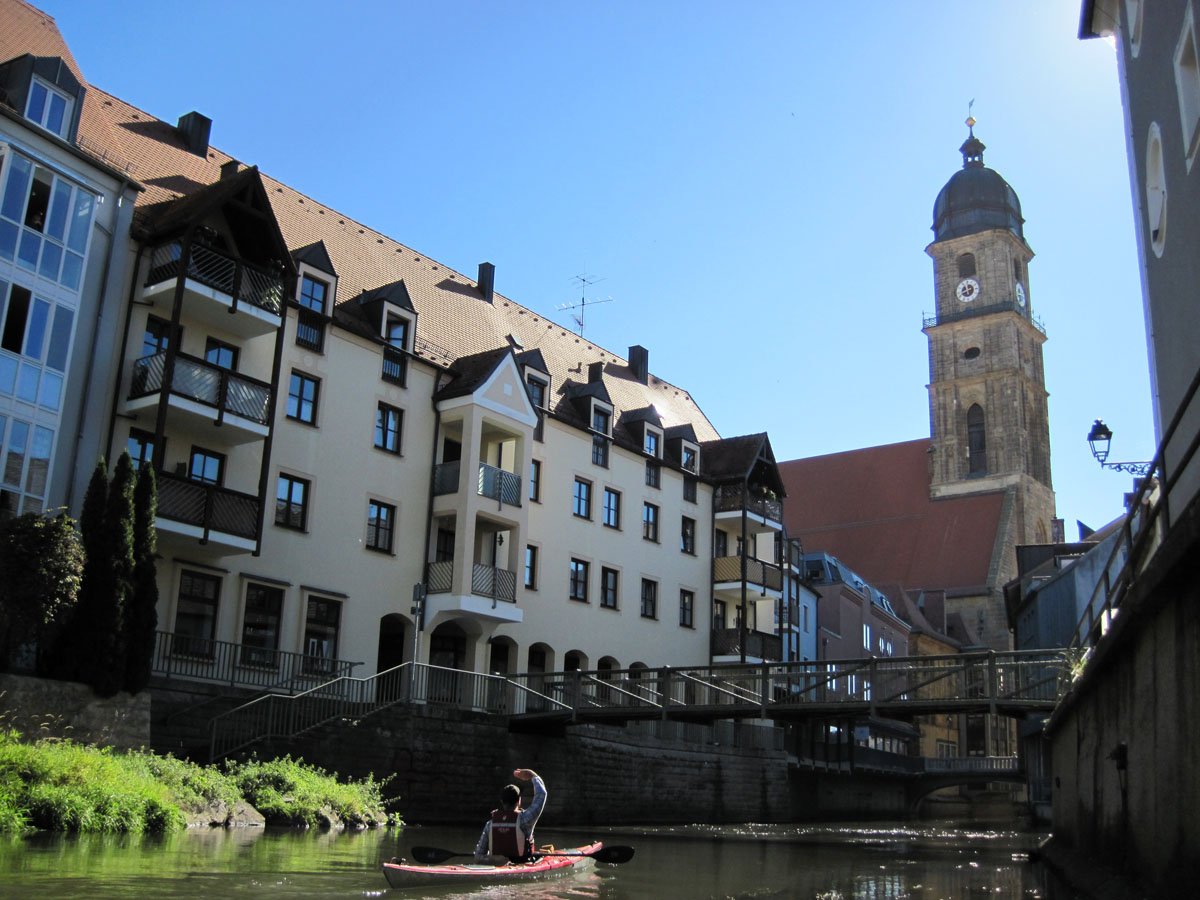 Vils: Diese Tour war die zweite von vier Fahrten. Gepaddelt wurde auf der Vils von Amberg bis Rieden. Eine echte Entdeckerfahrt, da hier vermutlich nur wenig gepaddelt wird. Wir haben keinen anderen Kajakfahrer gesehen und es gab auch fast keine Infrastruktur für Paddler an den insgesamt sieben Wehren auf 20 Kilometern. Um so spannender und herausfordernder war es. Hier kann man sich auf den DKV-Flussführer eher nicht verlassen und Jübermann-Gebiet ist das auch nicht... Also: Viel erkunden! Sehr schöner Kleinfluss mit eindrucksvoller Stadtdurchfahrt durch Amberg.
