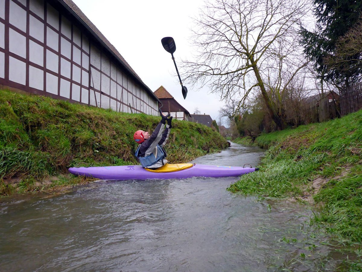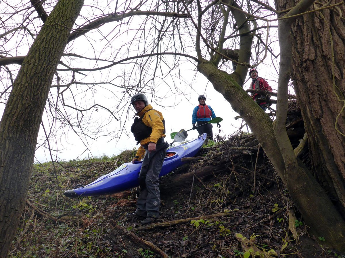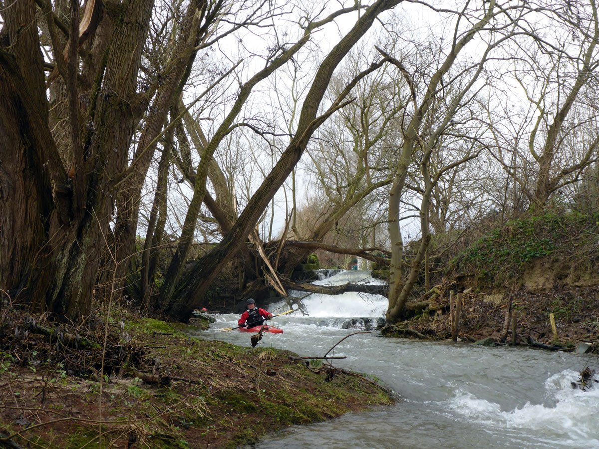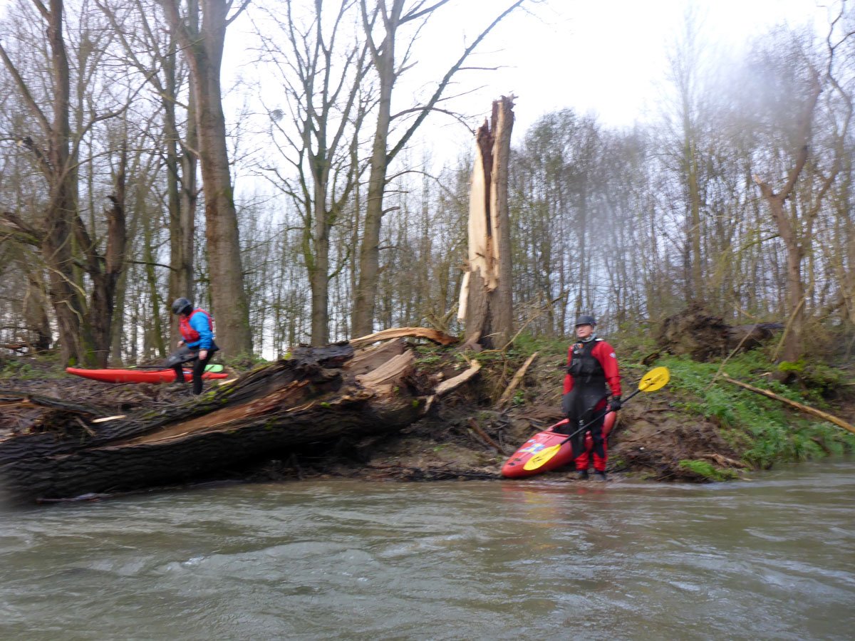 Ja, es ist möglich: 13 Kilometer paddeln und dabei 4 verschiedene Flüsse befahren - auch außerhalb des Spreewald-Labyrinths. Man nehme: Viel Wasser nach langen Niederschlägen und in der ohnehin wasserreichen Winterzeit, komplette kleinflusstaugliche Ausrüstung inkl. ausreichend kurzer Boote. Einige Gewässer sind weniger breit als ein Kajak lang ist. Man rechne mit oder plane ein: Nötiger Ausdauer, vielen Wehren, schlecht zugänglichem Gelände, noch mehr Wehren und allen denkbaren Kleinflusshindernissen bei durchweg zügiger Strömung durch hohe Wasserstände des ablaufenden Hochwassers. Heraus kommt eine sportlich-spannende Tour, die so nur selten möglich ist. So selten, das Alme und Riehe noch nicht einmal genau im Paddler-Standardwerk, dem DKV-Gewässerführer, beschrieben sind, sondern nur als Randnotiz auftauchen. Das macht es dann gleich zu etwas ganz besonderem, kommt doch noch eine Spur Expeditionscharakter direkt vor der Haustür dazu.