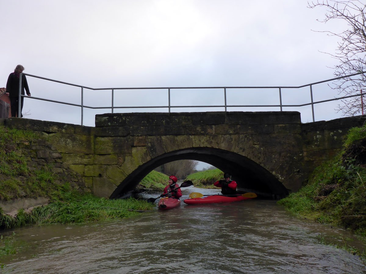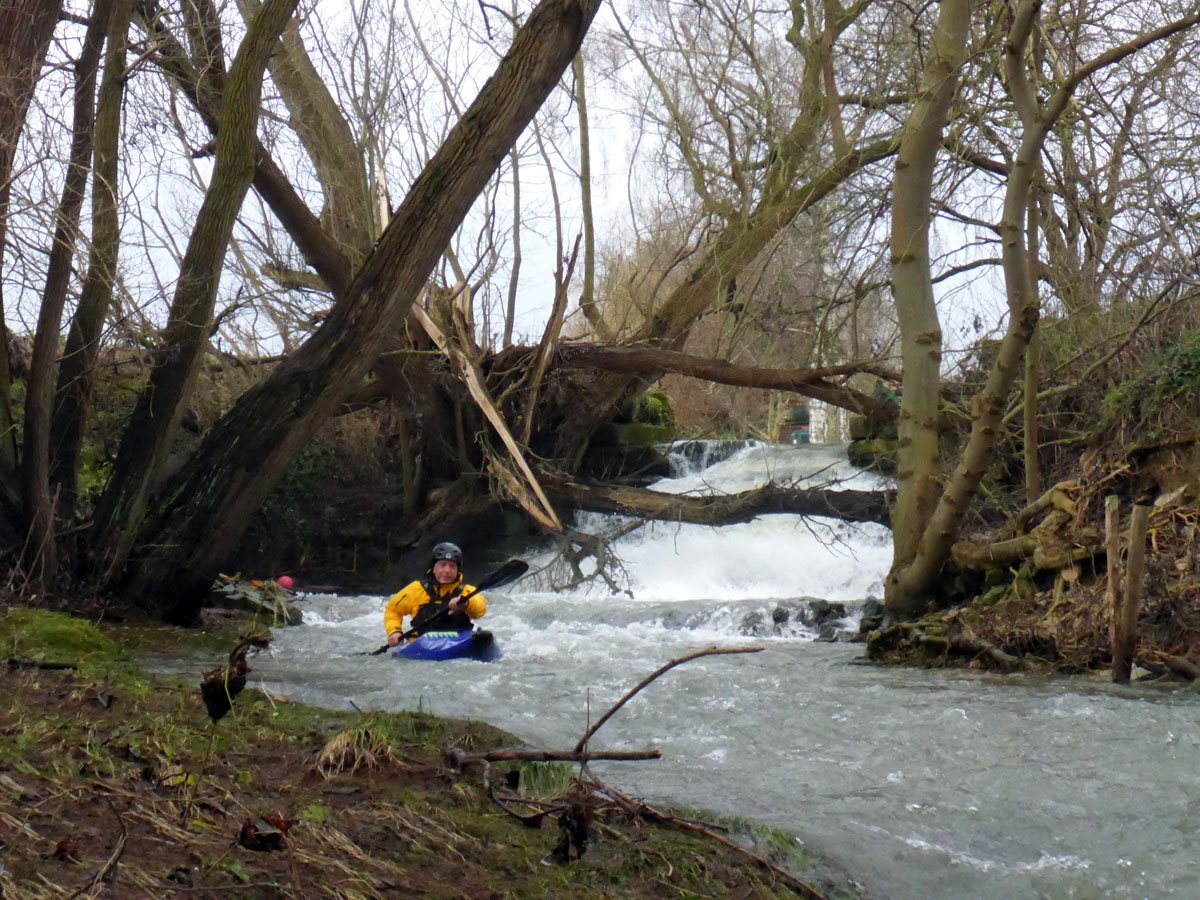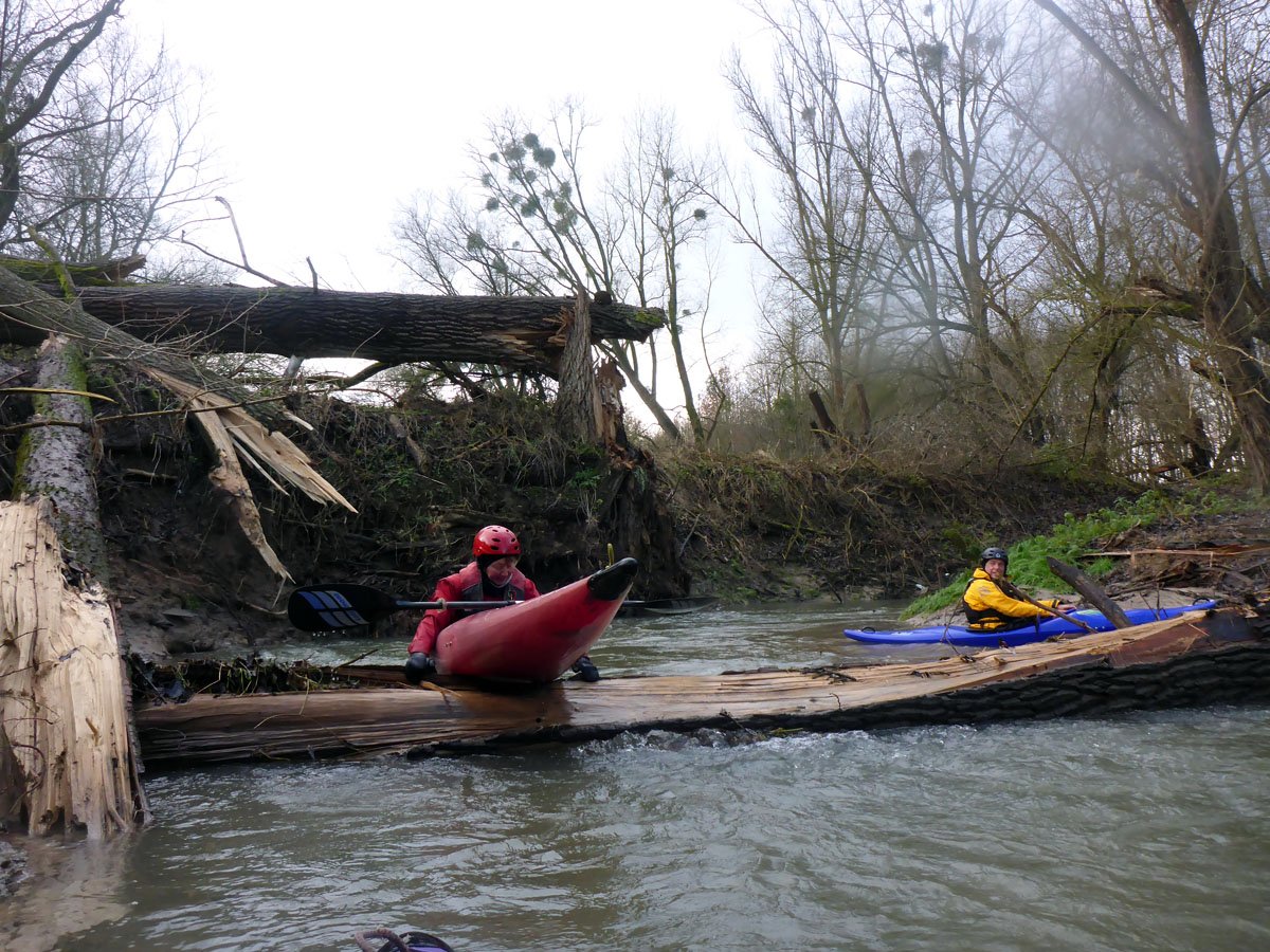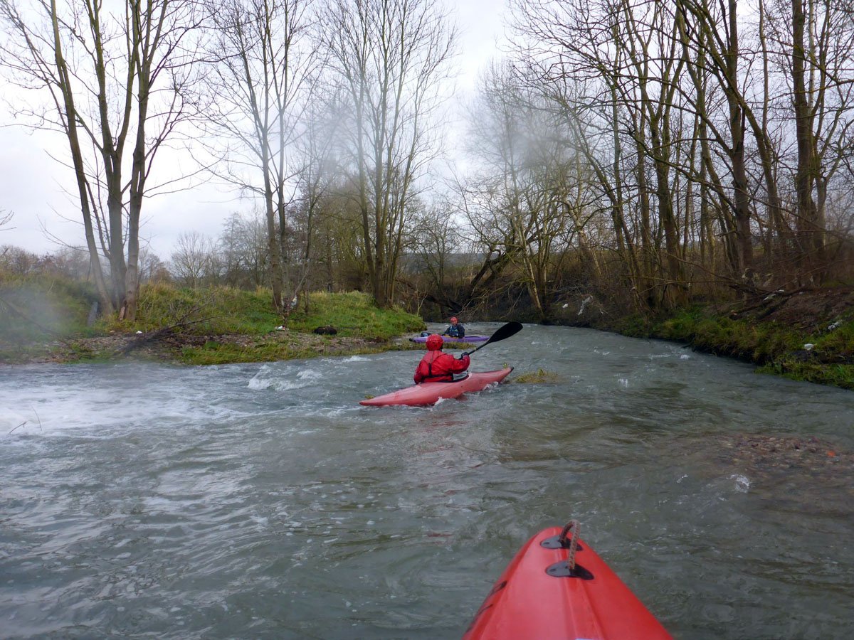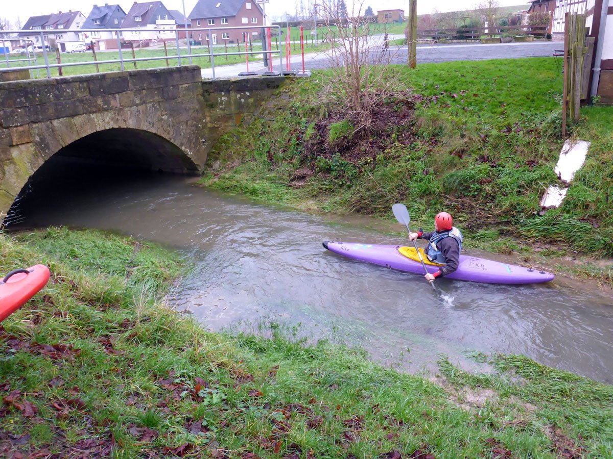 Ja, es ist möglich: 13 Kilometer paddeln und dabei 4 verschiedene Flüsse befahren - auch außerhalb des Spreewald-Labyrinths. Man nehme: Viel Wasser nach langen Niederschlägen und in der ohnehin wasserreichen Winterzeit, komplette kleinflusstaugliche Ausrüstung inkl. ausreichend kurzer Boote. Einige Gewässer sind weniger breit als ein Kajak lang ist. Man rechne mit oder plane ein: Nötiger Ausdauer, vielen Wehren, schlecht zugänglichem Gelände, noch mehr Wehren und allen denkbaren Kleinflusshindernissen bei durchweg zügiger Strömung durch hohe Wasserstände des ablaufenden Hochwassers. Heraus kommt eine sportlich-spannende Tour, die so nur selten möglich ist. So selten, das Alme und Riehe noch nicht einmal genau im Paddler-Standardwerk, dem DKV-Gewässerführer, beschrieben sind, sondern nur als Randnotiz auftauchen. Das macht es dann gleich zu etwas ganz besonderem, kommt doch noch eine Spur Expeditionscharakter direkt vor der Haustür dazu.