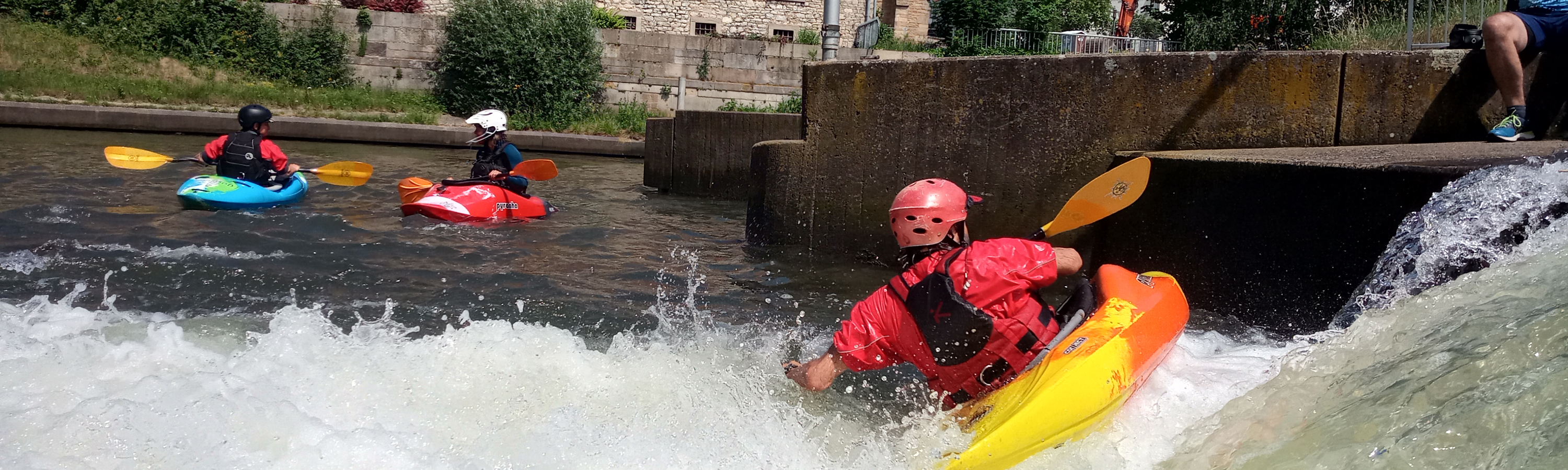 Im Sommerhalbjahr (bis Oktober) trainieren wir wöchentlich, immer am Montagabend, auf dieser Strecke. Der Wasserstand der Anlage ist individuell regelbar, so dass auf der einen Seite Paddelanfänger behutsam an bewegtes Wasser herangeführt werden können, auf der anderen Seite aber auch unsere "Profis" nicht zu kurz kommen. Saisonstart 2026 ist am Montag, 09.03.2026.